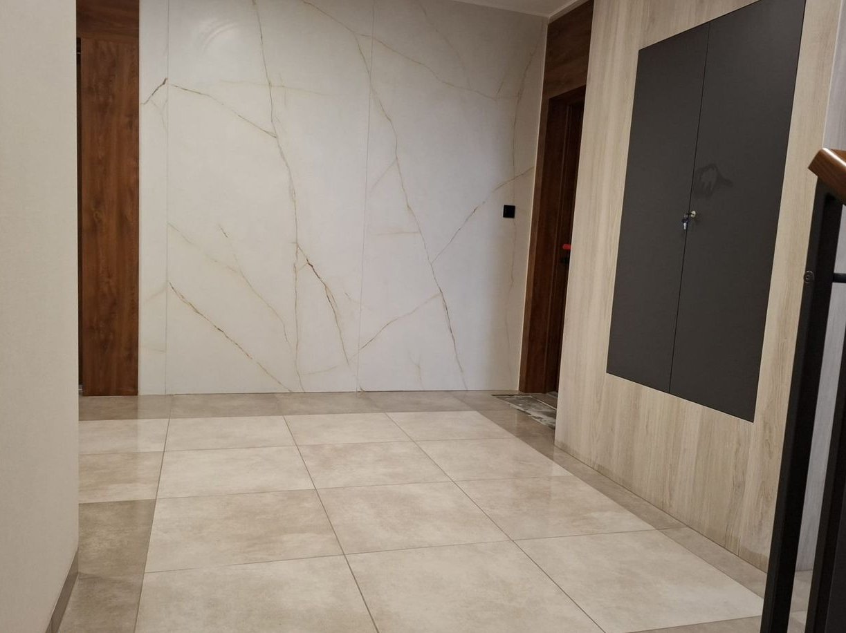 Wysokiej klasy wykończenie części wspólnych (spieki kwarcowe wielkoformatowe, tapeta)