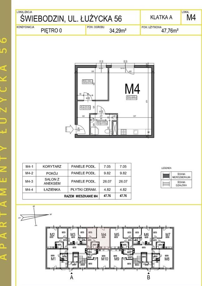 2-pokojowe mieszkanie numer 4 na parterze w budynku A w Inwestycji Apartamenty Łużycka 56 Dewelopera Mercede