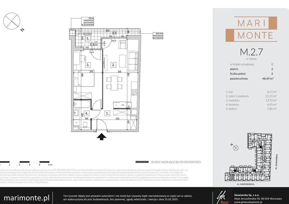2-pokojowe mieszkanie numer M.2.7 na 2. piętrze w Inwestycji Marimonte Dewelopera GH Development