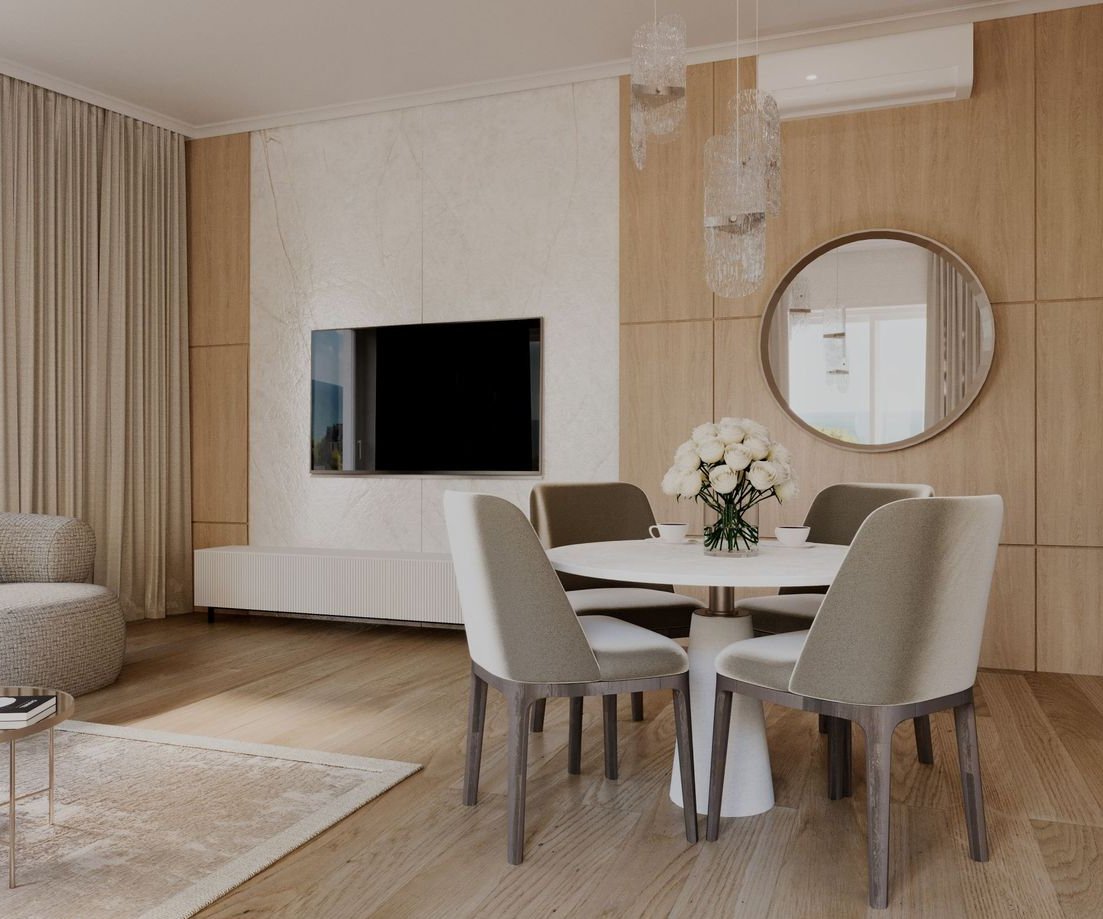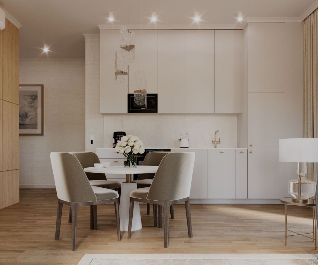 Apartamenty Klifova oferowane są w dopracowanych wariantach wykończenia, zaprojektowanych z myślą o ponadczasowej estetyce i trwałości. Naturalna kolorystyka, starannie dobrane materiały oraz spójna koncepcja wnętrz tworzą przestrzenie gotowe do użytkowania.