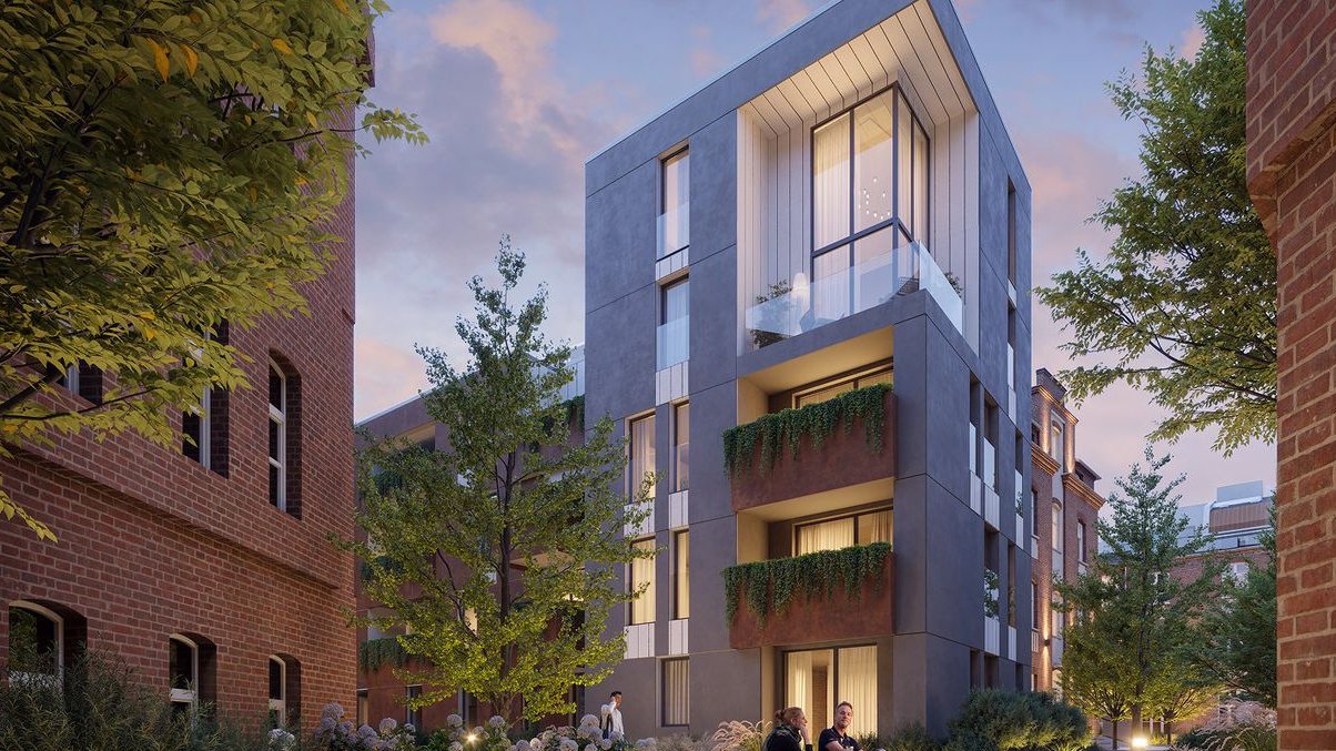 Cornette to rezydencjalny ansambl architektoniczny złożony z pięciu budynków, które harmonijnie łączą zabytkową architekturę z nowoczesnym designem. Trzy z nich to starannie odrestaurowane pawilony z czerwonej cegły – autentyczne, z duszą. Dwa kolejne to współczesne formy, zaprojektowane tak, by nie dominować, lecz subtelnie dopełniać istniejącą tkankę urbanistyczną.