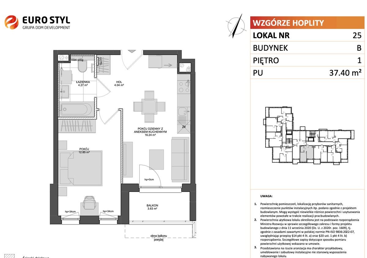 Nieruchomość zaprojektowana tak, aby wykorzystać całkowitą przestrzeń – komfortowy salon z aneksem kuchennym (16,24 m2) z wyjściem na balkon (3,63 m2), sypialnia (12,85 m2), przestronna łazienka (4,27 m2) oraz możliwość zabudowy w przedpokoju.