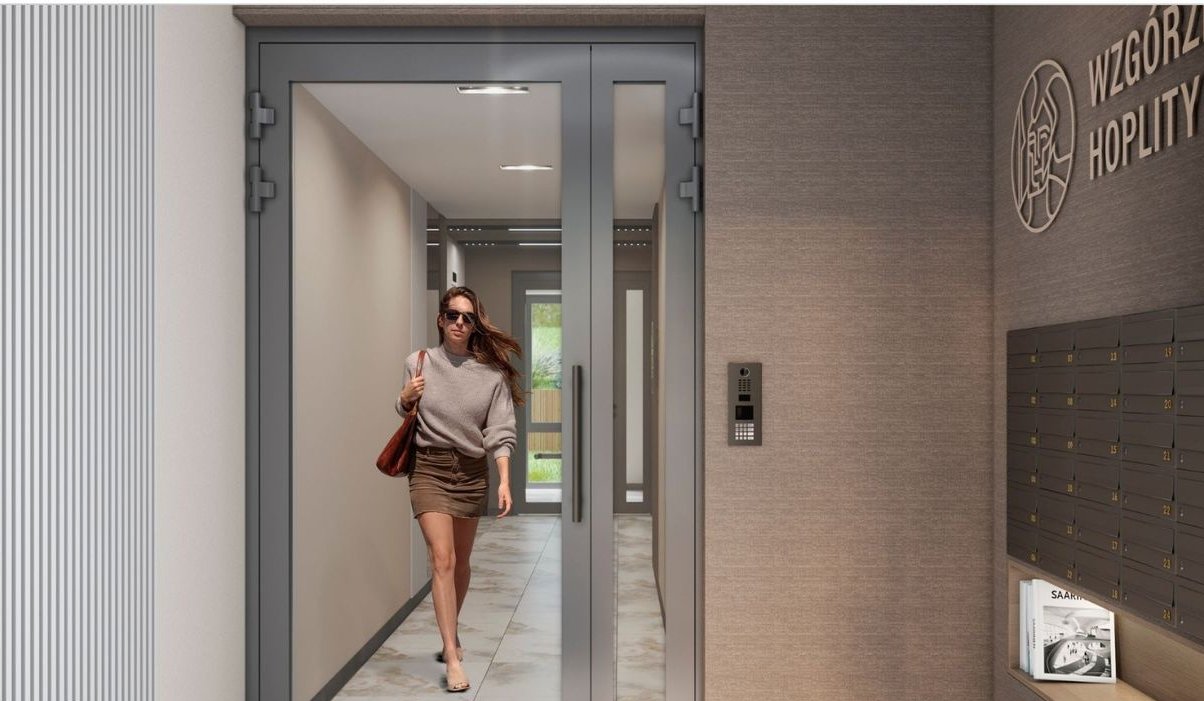 Eleganckie, dopracowane części wspólne oraz duże przeszklenia zapewniające świetne doświetlenie to dodatkowe atuty inwestycji.