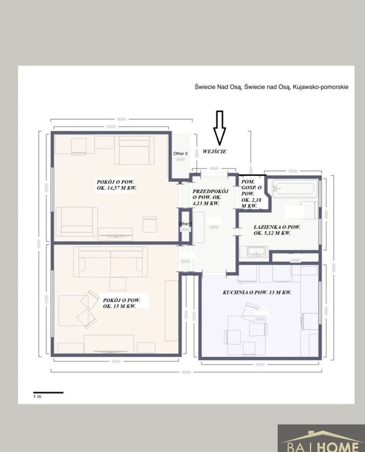 Biuro nieruchomości BAJ HOME ma przyjemność przedstawić Państwu 2-pokojowe mieszkanie o powierzchni użytkowej 54 m2. Zlokalizowane jest ono na pożądanym wysokim parterze budynku wielorodzinnego, położonego w miejscowości Świecie n/Osą, województwie kujawsko-pomorskim, powiecie grudziądzkim.