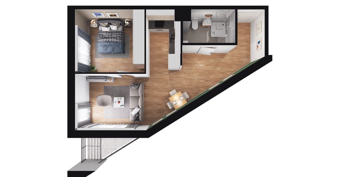 2-pokojowy apartament inwestycyjny numer A .3.12 na 2. piętrze w budynku A w Inwestycji Żurawie II - apartamenty inwestycyjne Dewelopera YIT Development