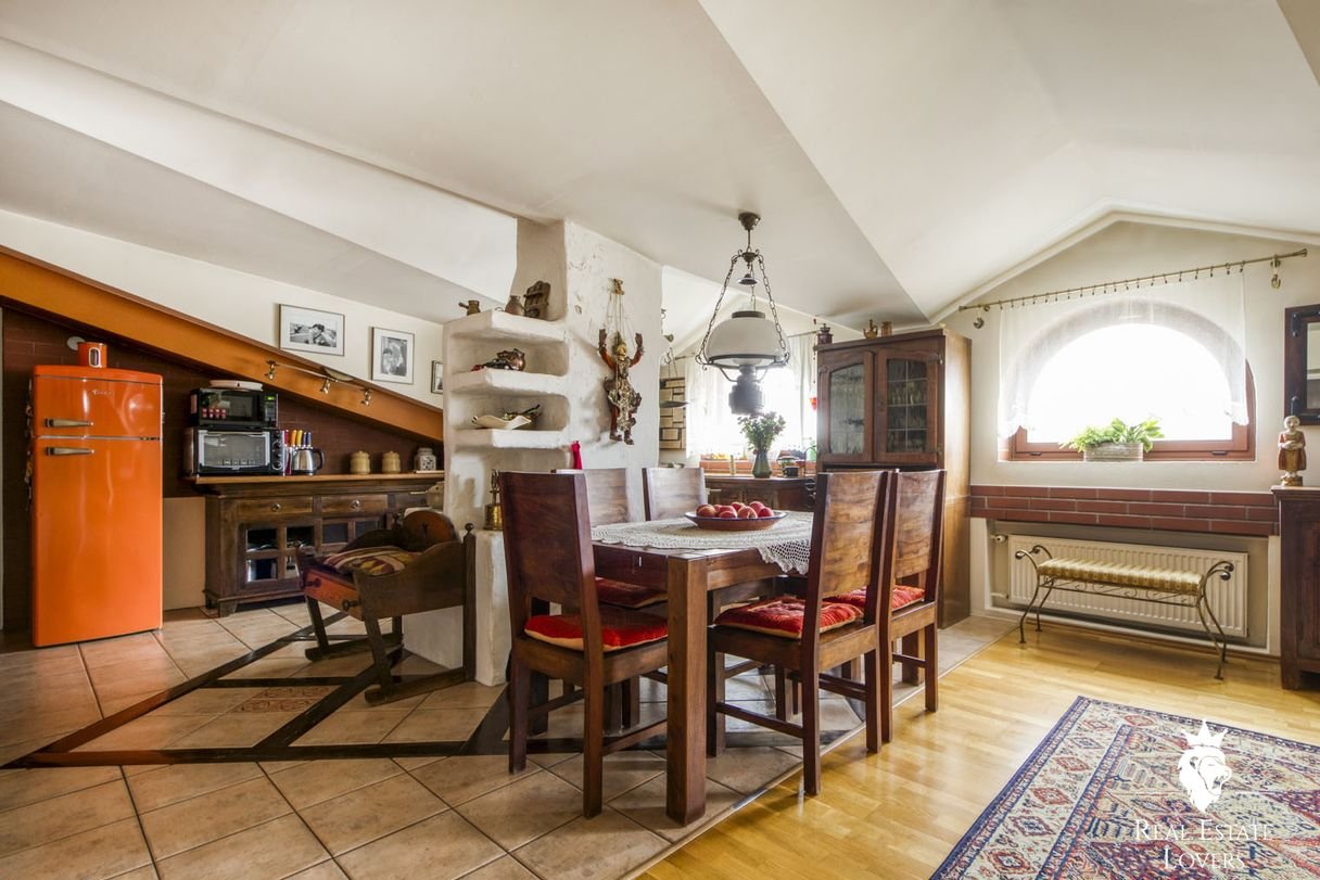Skosy nadają wnętrzu charakter, ale nie odbierają przestrzeni. Drewniane podłogi, cegła, autorskie meble i artystyczne detale tworzą miejsce gotowe do życia i pracy kreatywnej. Część wyposażenia może zostać - jeśli chcesz zachować ten unikalny klimat, nie musisz zaczynać od zera.