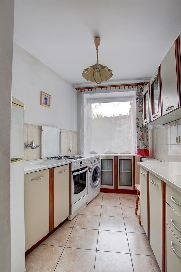 Składa się z dwóch pokoi, widnej kuchni, łazienki i przedpokoju z wieloma miejscami do przechowywania.