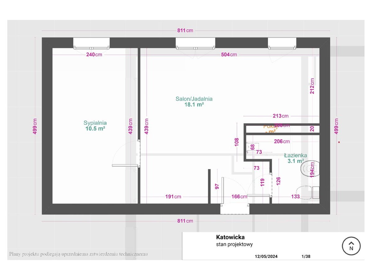 Mieszkanie inwestycyjne lub do własnego zamieszkania (sypialnia plus salon z kuchnią).
