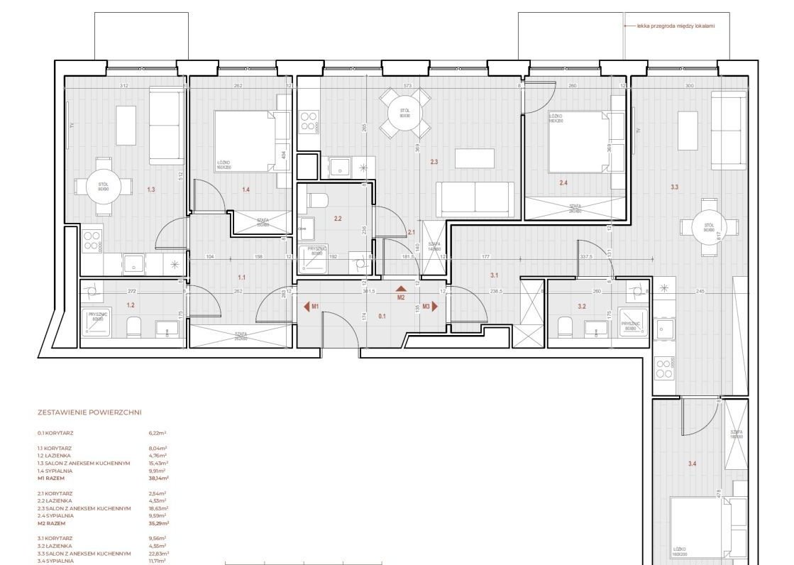 Dodatkowo jest także wspólny korytarz (6,23 m²).