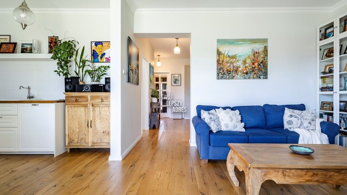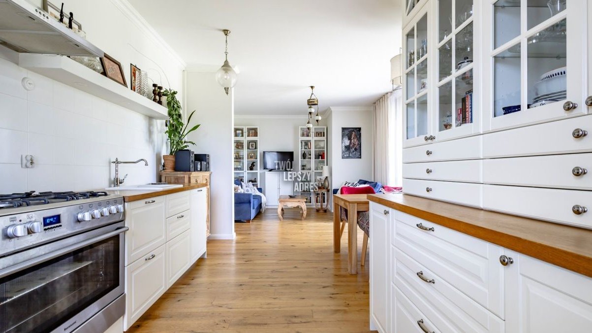 Mieszkanie wykończone z wysokiej klasy materiałów. Na podłogach pokoi deska berlinecka, w łazience cementowe płytki marokańskie. Kuchnia w zabudowie wyposażona w niezbędny sprzęt AGD. Okna PCV. Ogrzewanie własne gazowe.