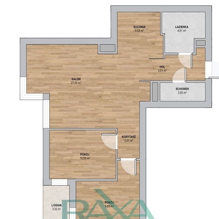 Powierzchnia mieszkania to 66,99 m² plus loggia o powierzchni 3,3 m².