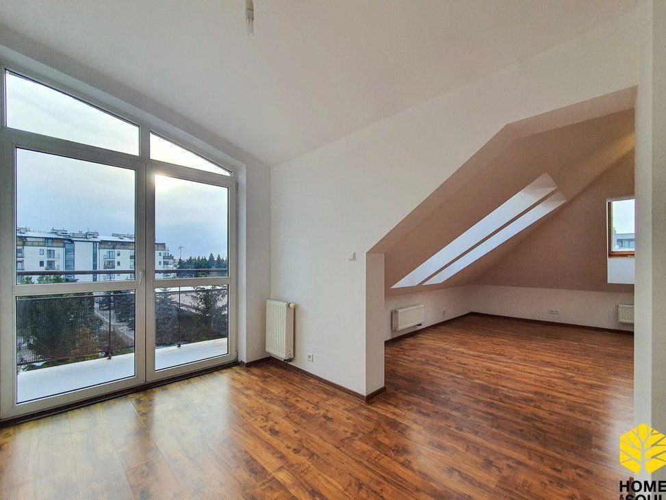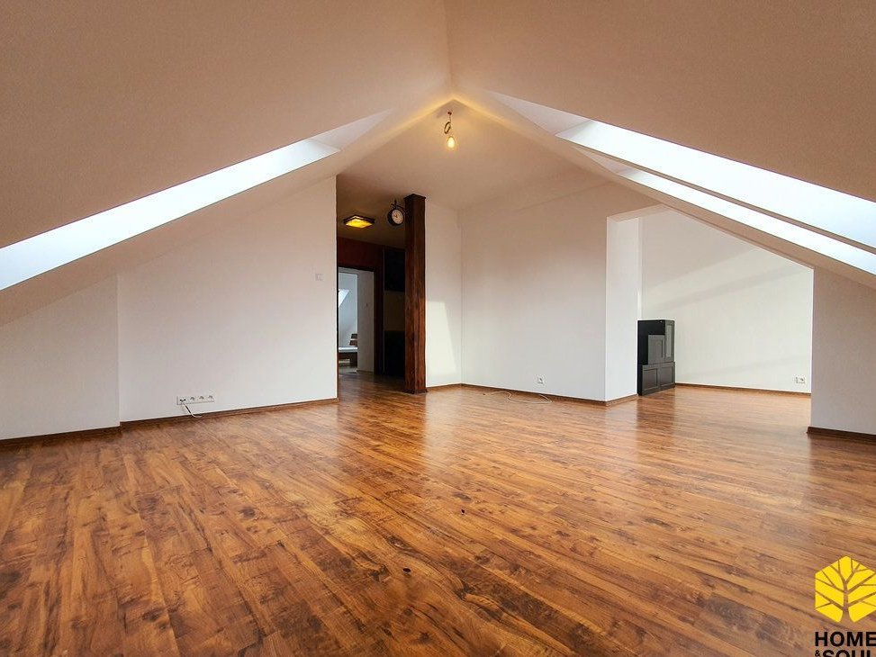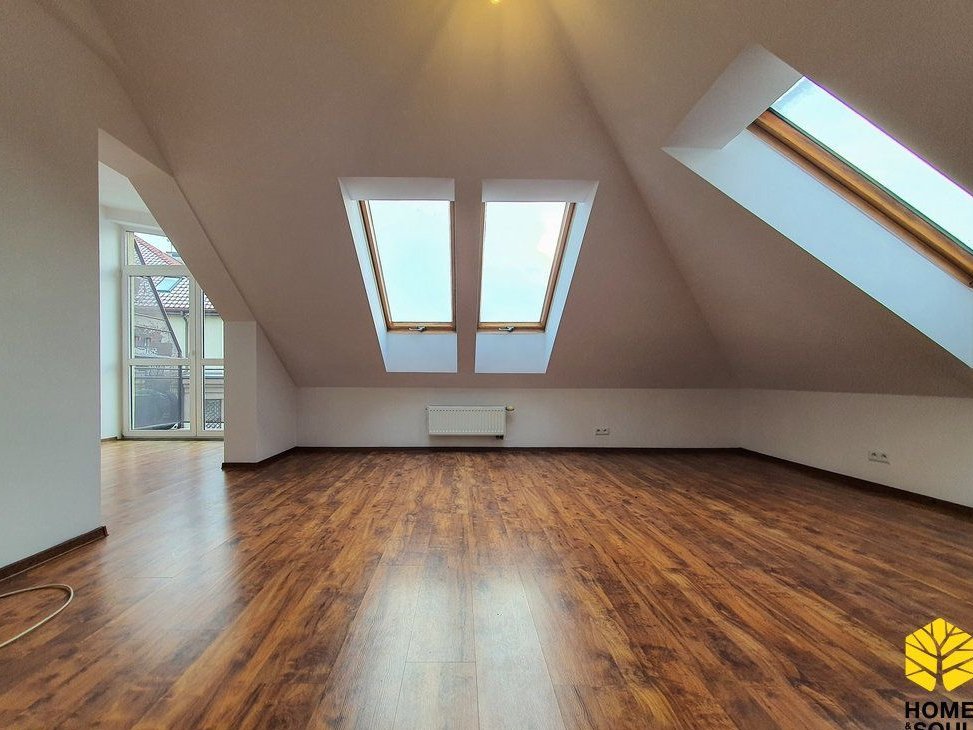 Mieszkanie po odświeżeniu, gotowe do zamieszkania. Na poddaszu, ze skosami - po podłodze mieszkanie ma 86m2. Słoneczne, trójstronne. Duży salon z balkonem, z możliwością wydzielenia miejsca do pracy. Osobna, w pełni wyposażona kuchnia. Dwie przestronne sypialnie. Duża łazienka z wanną.