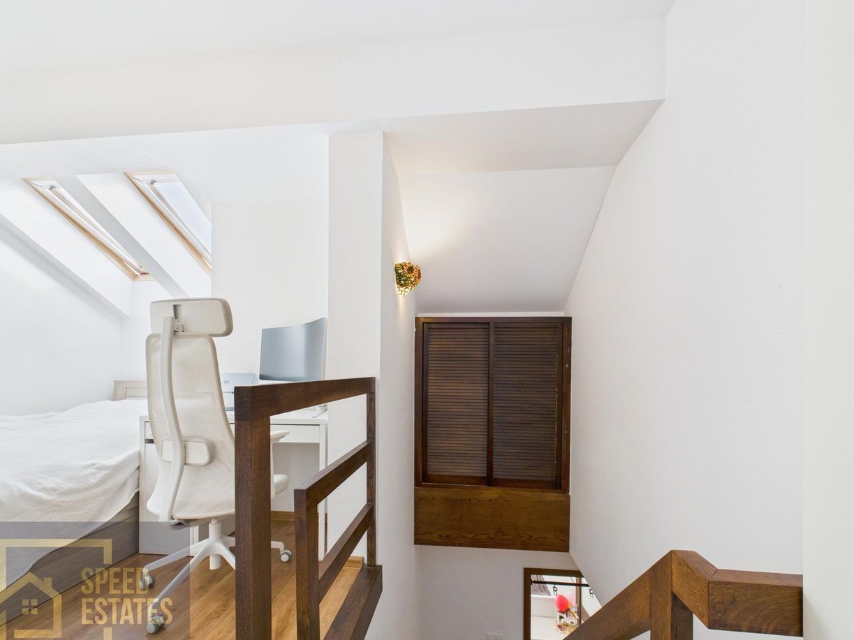 antresola – 9,65 m² + praktyczny schowek pod skosem
