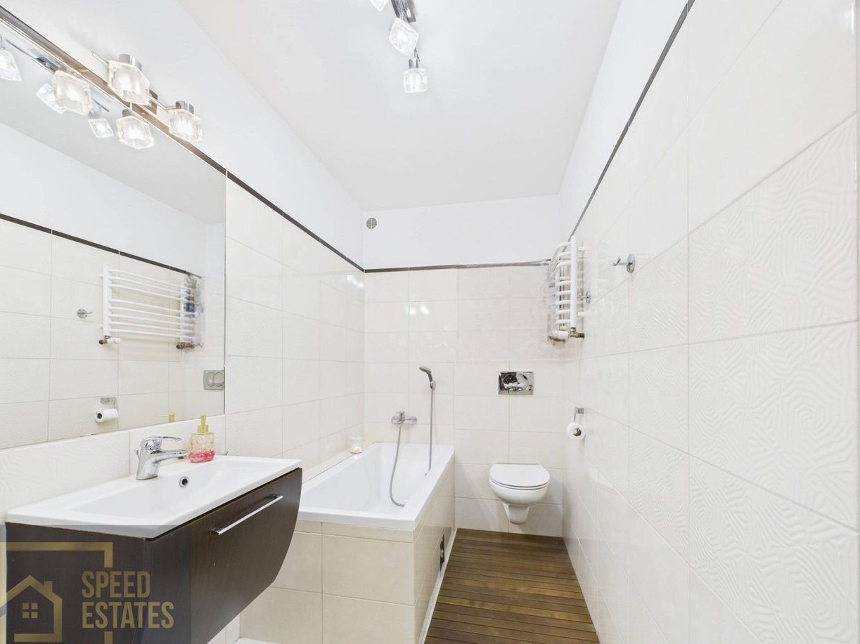 Serce mieszkania to salon z aneksem kuchennym i wyjściem na balkon, dwa komfortowe pokoje, w tym klimatyczna antresola idealna jako sypialnia, gabinet lub strefa relaksu, przestronna łazienka, funkcjonalny przedpokój z miejscem do przechowywania.