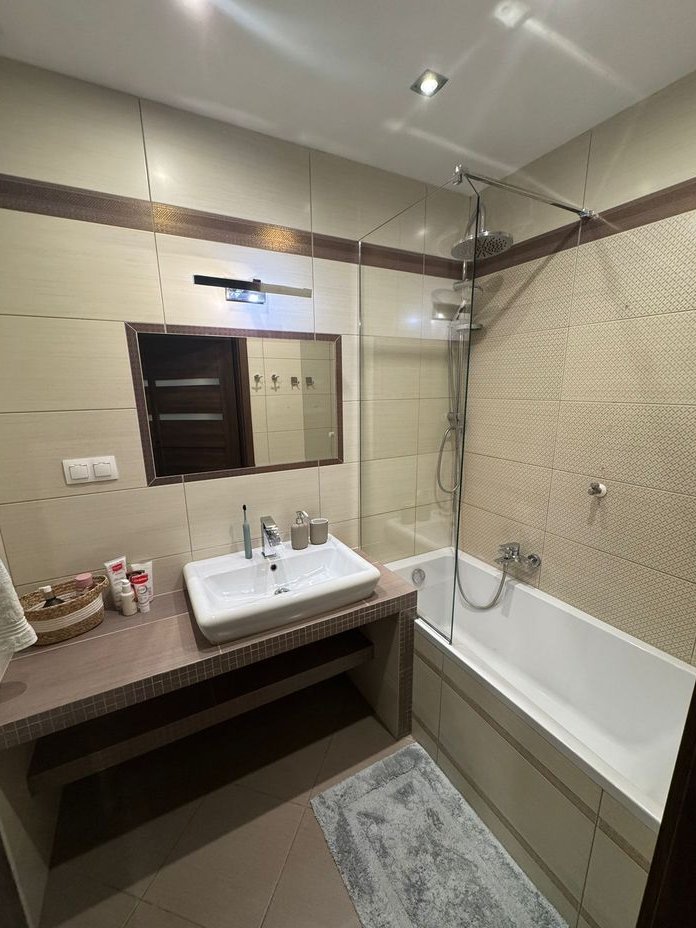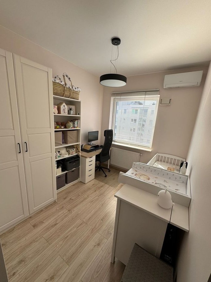 Kuchnia oraz przedpokój zabudowane są meblami na wymiar, co zapewnia dużo miejsca do przechowywania. Dodatkowym atutem jest klimatyzacja w każdym pokoju (instalacja z 2022 r.). Kolejnym plusem mieszkania jest także bardzo duży balkon (9,5 m2).