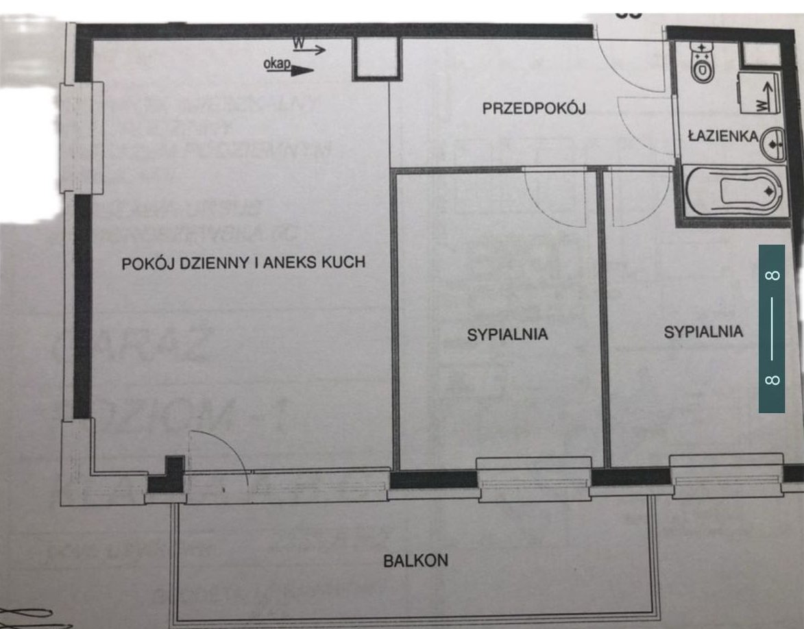 Mieszkanie sprzedawane jest wraz z miejscem parkingowym w garażu podziemnym (dodatkowo płatne – 60 000 zł). Mieszkańcy oraz ich goście mogą również korzystać z bezpłatnego parkingu przy budynku (po rejestracji pojazdu w aplikacji).