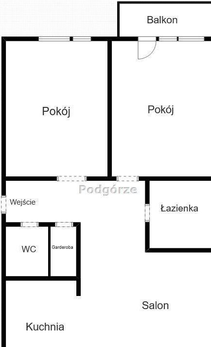 - salon z kuchnią częściowo otwartą (można zamknąć) , dwie sypialnie, łazienka, osobna toaleta oraz przedpokój