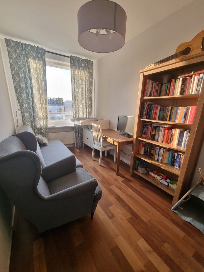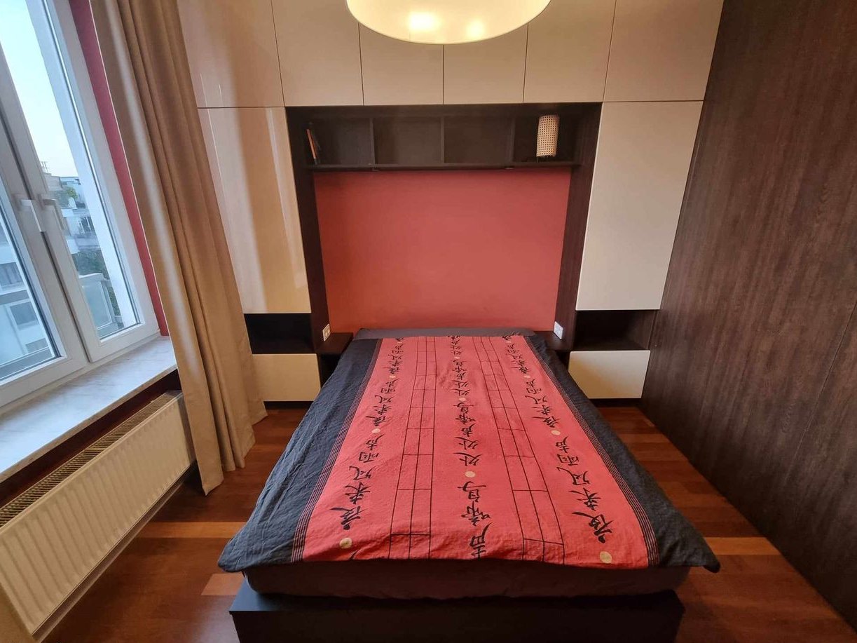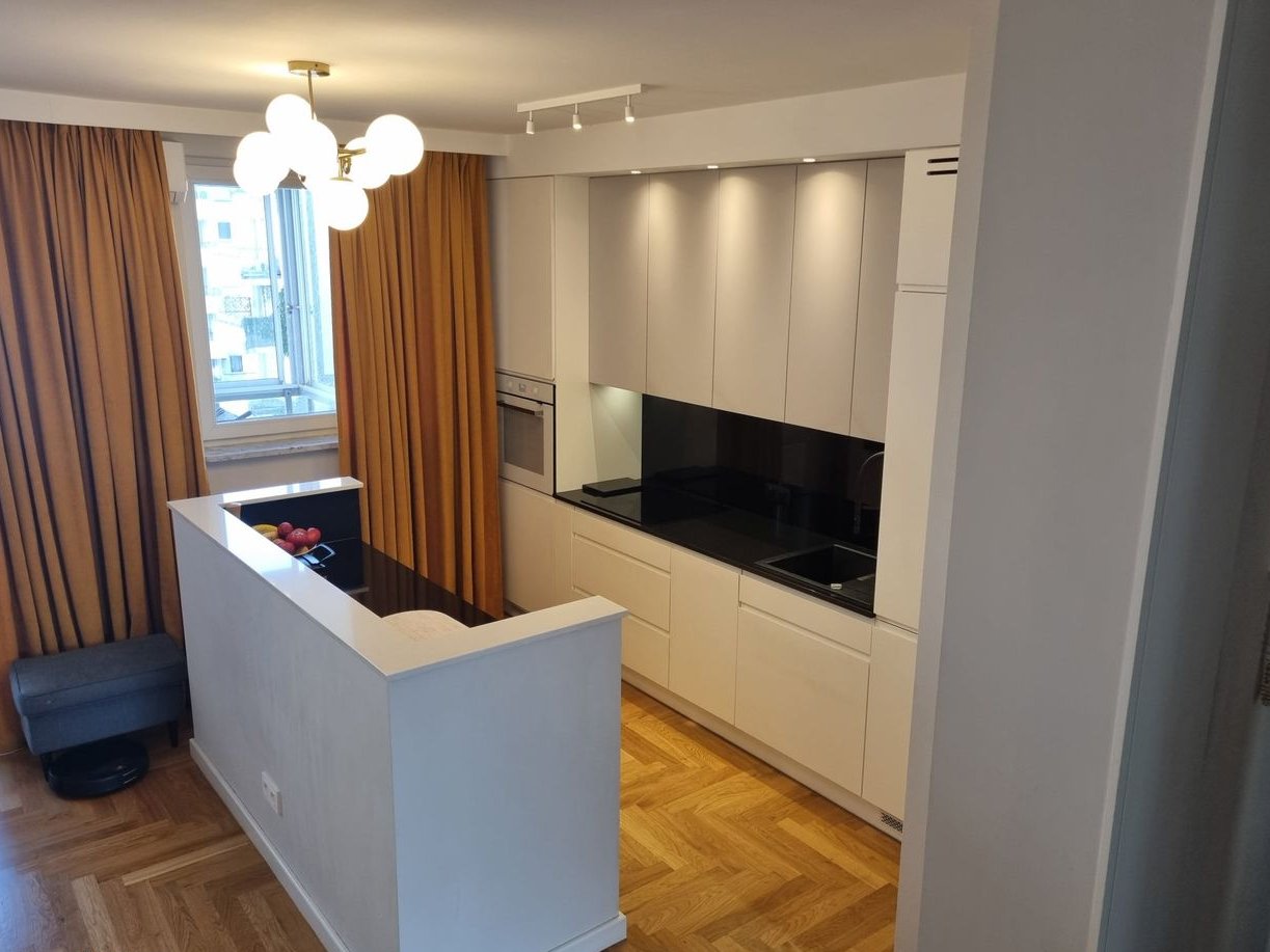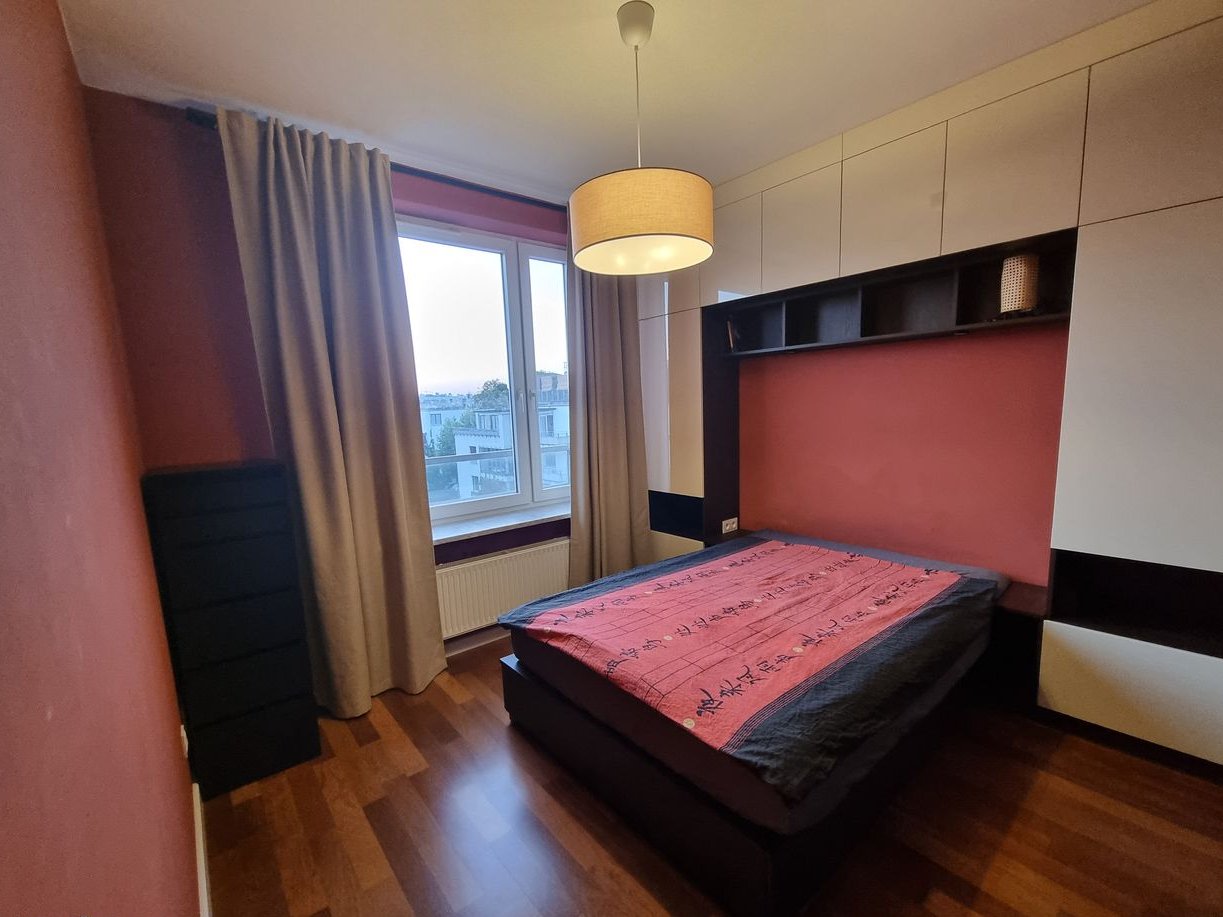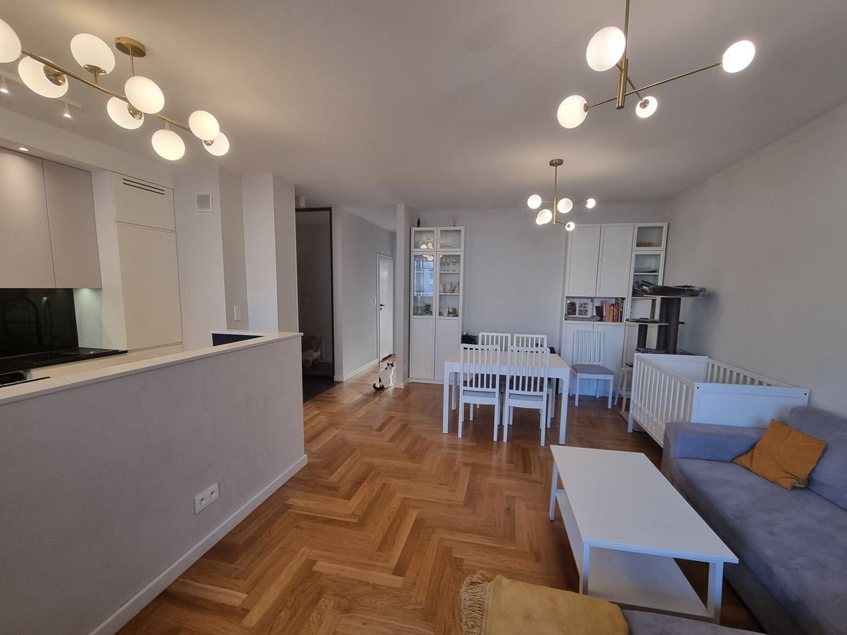 The apartment underwent a thorough renovation in 2021 (replacement of floors, connecting the kitchen with the living room, new bathrooms, kitchen, and custom furniture). The high standard of finishing includes wooden floors, plenty of custom-made furniture (kitchen, wardrobes, bedroom), stone countertops in the kitchen, etc. Additionally, air conditioning was installed in the living room in 2024. The apartment is in a very good location, in a gated community with a private pond, parks, and extensive recreational and sports infrastructure. Full urban infrastructure is nearby (pharmacies, shops, nurseries, kindergartens, clinics, restaurants, and cafes). The location provides good access to the city center, proximity to the business district in Warsaw's Służew, or the possibility of walking to Pole Mokotowskie and Old Mokotów. A station for the 4th metro line is planned nearby.