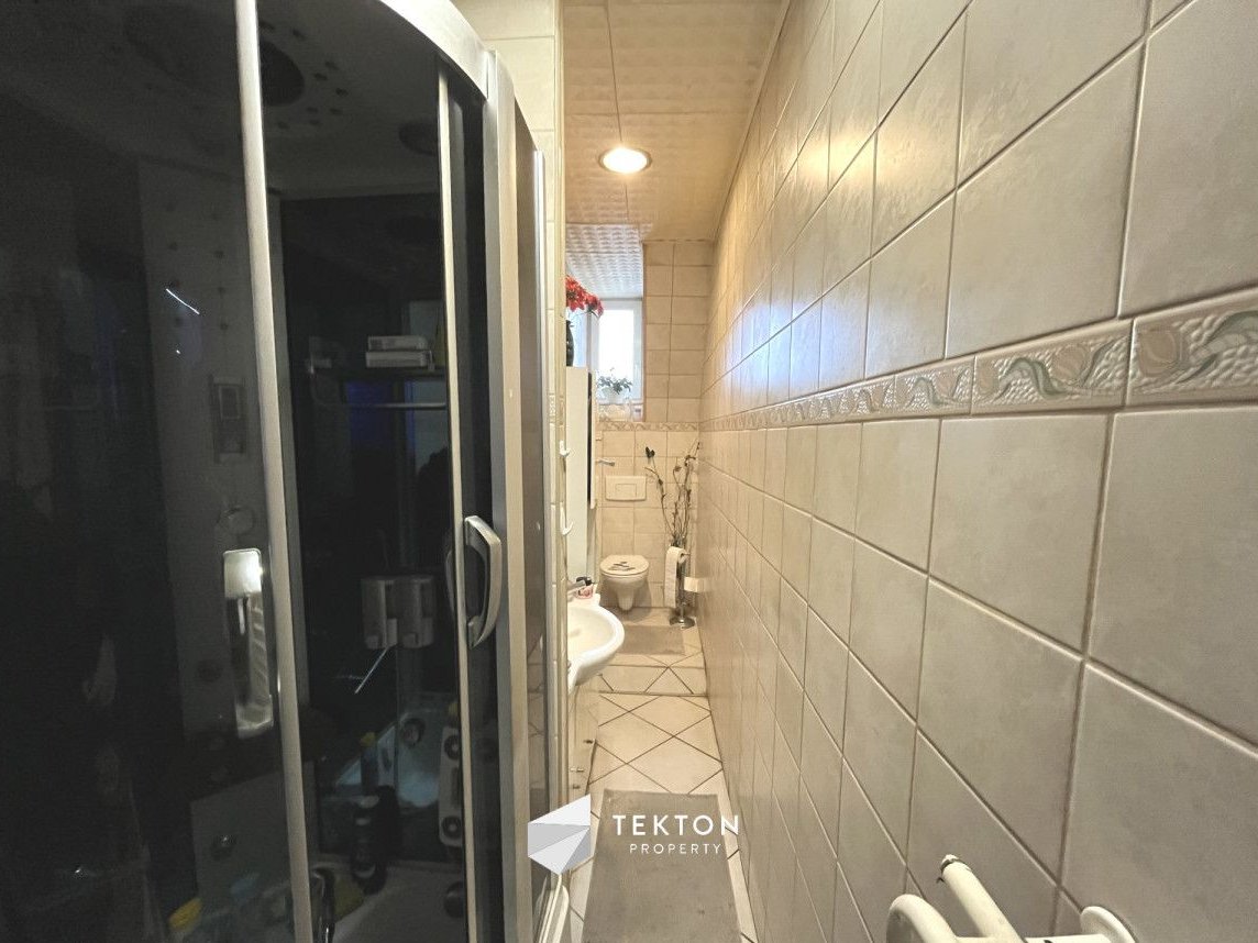 Łazienka, chociaż wymaga odnowienia, posiada elementy zachowane w stylu historycznym. Przy odrobinie kreatywności i nowoczesnych rozwiązań, to miejsce może stać się unikalną przestrzenią relaksu.