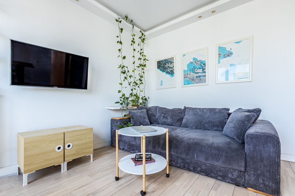 • Salon połączony z aneksem kuchennym – jasna, otwarta przestrzeń dzienna