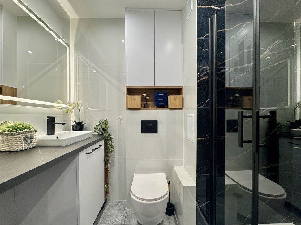 nowoczesna łazienka w pełni wyposażona,