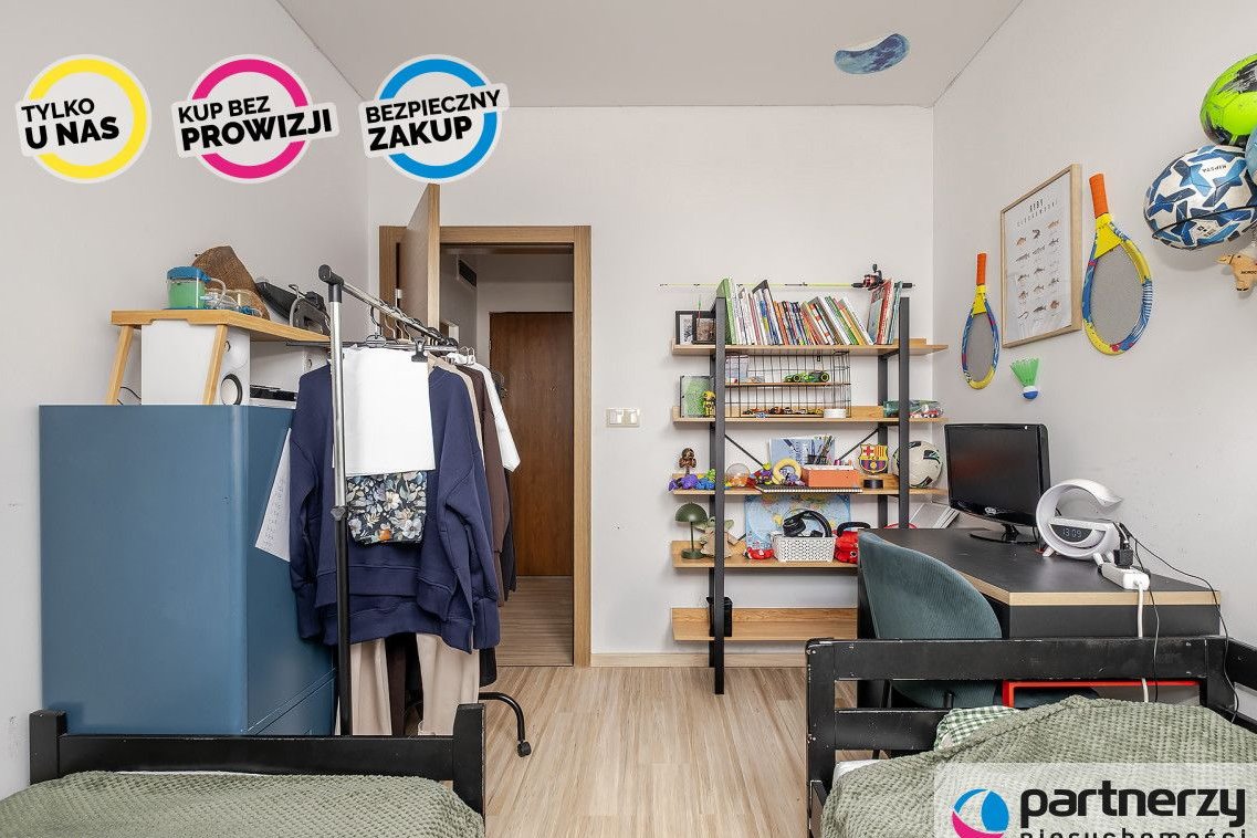 Osiedle Modre - najbardziej prestiżowe osiedle w Straszynie. W pełni monitorowane oraz strzeżone. Pozostaje odsunięte od pozostałej, zabudowanej części Straszyna. Cicha i spokojna okolica. Wszystkie budynki mieszkalne otoczone w pięknie zaprojektowanej i zaaranżowanej zieleni. Na osiedlu znajduję się ogólnodostępny kort tenisowy oraz boisko do koszykówki i siatkówki. Przedszkole na terenie osiedla z pewnością ułatwi życie rodzicom małych dzieci. Około 10 minut pieszo przez łąkę zajmuję dojście do jeziora, a także do jedynego w swoim rodzaju miejsca - opuszczonego w latach 80-tych dużego basenu wybudowanego w lesie, którego przywrócenie do życia marzy się wielu mieszkańcom. Mieszkanie znajduje się z najbardziej urokliwej części Straszyna. Wyjątkowa lokalizacja zapewnia ciszę i spokój. Straszyn jest bardzo dobrze skomunikowany z resztą Trójmiasta co jest również bardzo ważnym atutem mieszkania w tej okolicy. Osiedle posiada w pełni zagospodarowane tereny zielone. Cały kompleks jest bardzo zadbany. Niska zabudowa oraz pełne zaplecze handlowo-usługowe znajdujące się w niedalekiej odległości czyni to miejsce idealnym do zamieszkania. Teren osiedla ogrodzony i objęty całodobowym monitoringiem, co zwiększa bezpieczeństwo mieszkańców.