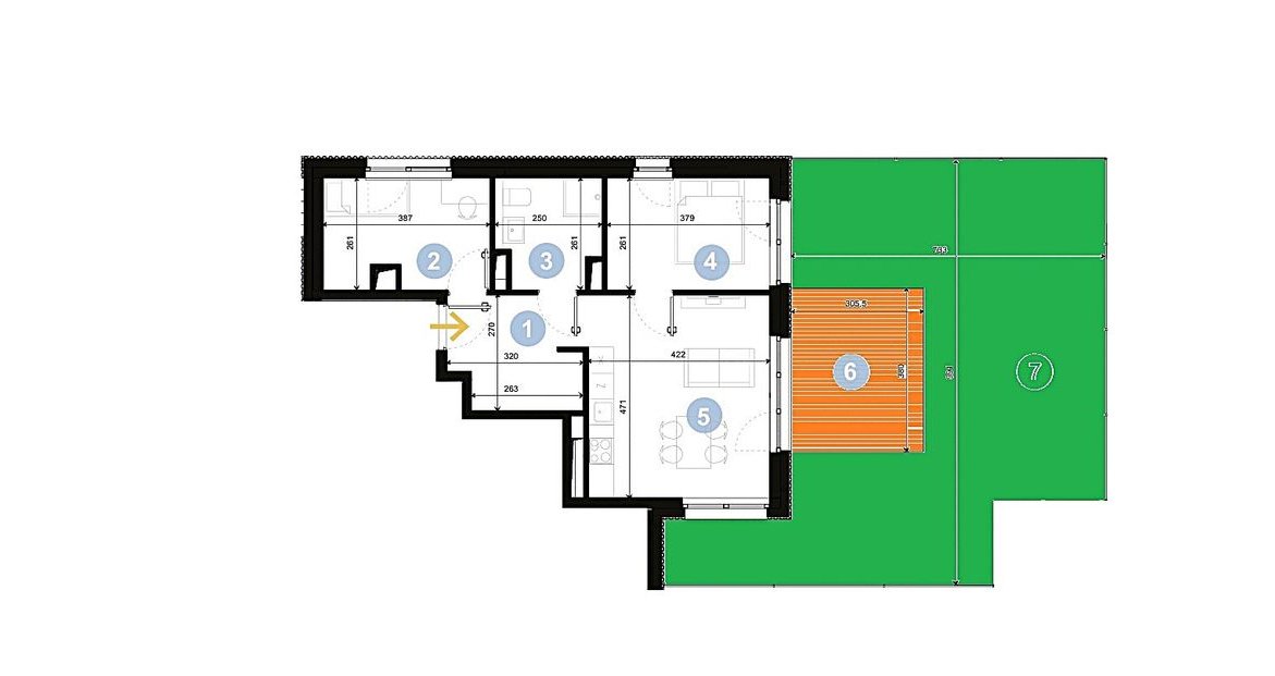 Funkcjonalne 3-pokojowe mieszkanie z prywatnym ogródkiem ponad 60 m2, położone na parterze w budynku z windą. Układ pomieszczeń: – Pokój dzienny z aneksem kuchennym – Dwie sypialnie – Łazienka – Przedpokój – Pralnia / schowek – Ogródek z wyjściem z salonu Mieszkanie w stanie deweloperskim z rozprowadzonymi instalacjami. Ogrzewanie podłogowe z miejskiej sieci ciepłowniczej.