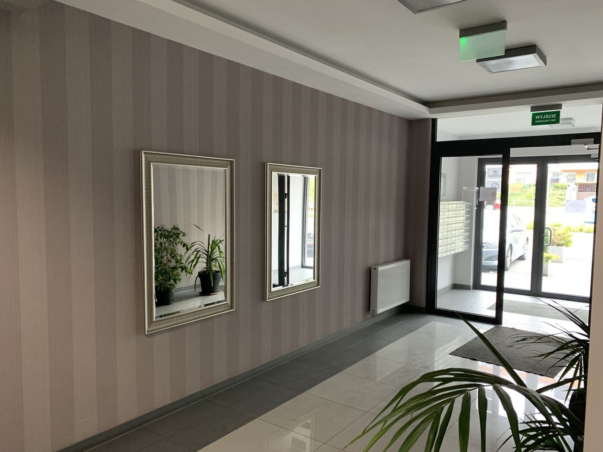 REPREZENTACYJNE LOBBY z wygodną sofą, dużymi lustrami i zielonymi roślinami – prawdziwe wrażenie przy wejściu, jak w hotelu premium