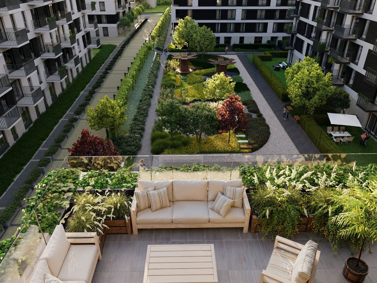 Przestrzenie wspólne wzbogaci ponad 2000 starannie dobranych nasadzeń, które nadadzą osiedlu przyjazny, naturalny charakter. Różnorodne gatunki roślin pozytywnie wpłyną na otoczenie, wprowadzając więcej zieleni, cienia i przyjemnej atmosfery sprzyjającej odpoczynkowi na świeżym powietrzu.
