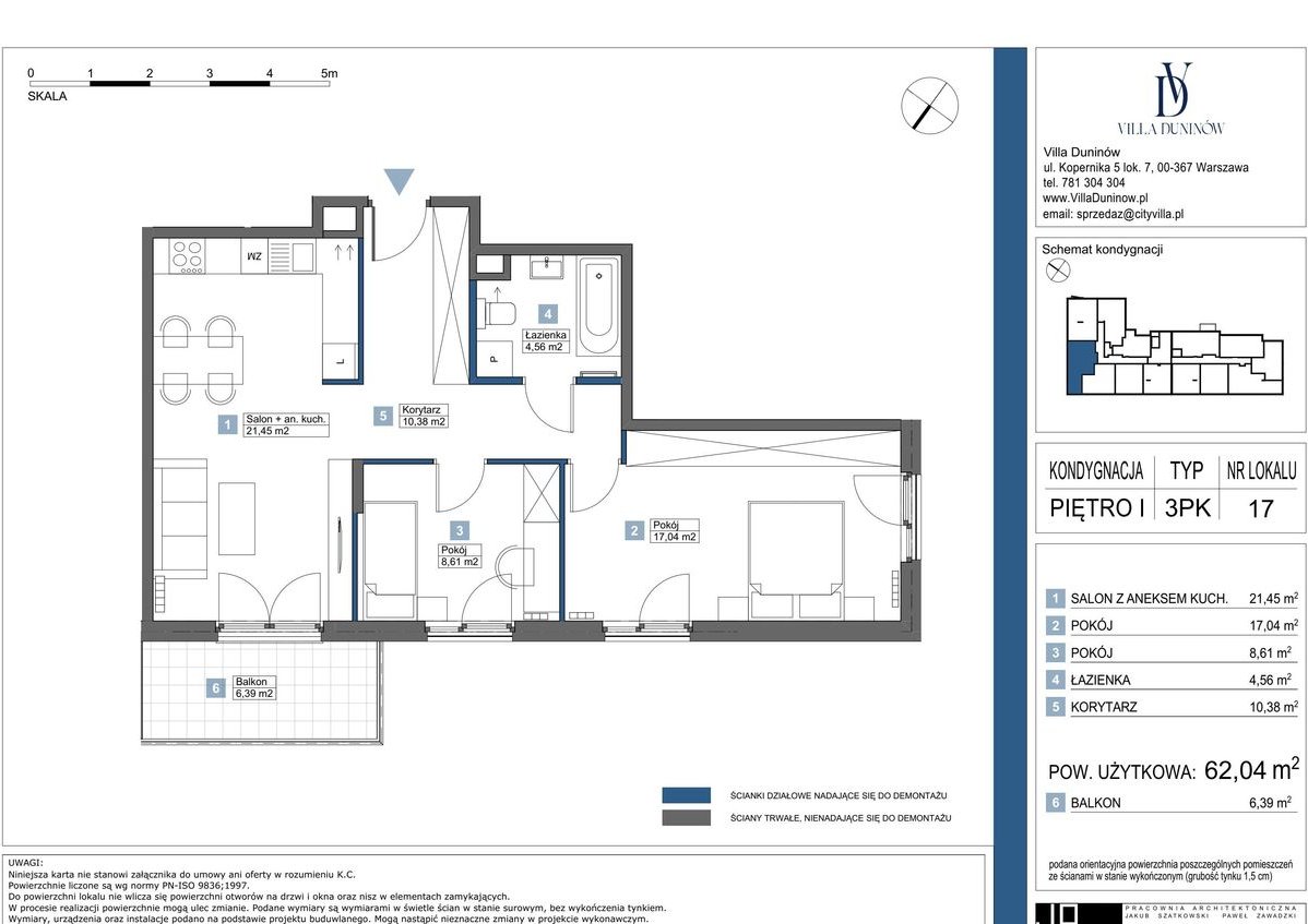 3-pokojowe mieszkanie numer 17 na 1. piętrze w Inwestycji Villa Duninów Dewelopera City Villa Invest