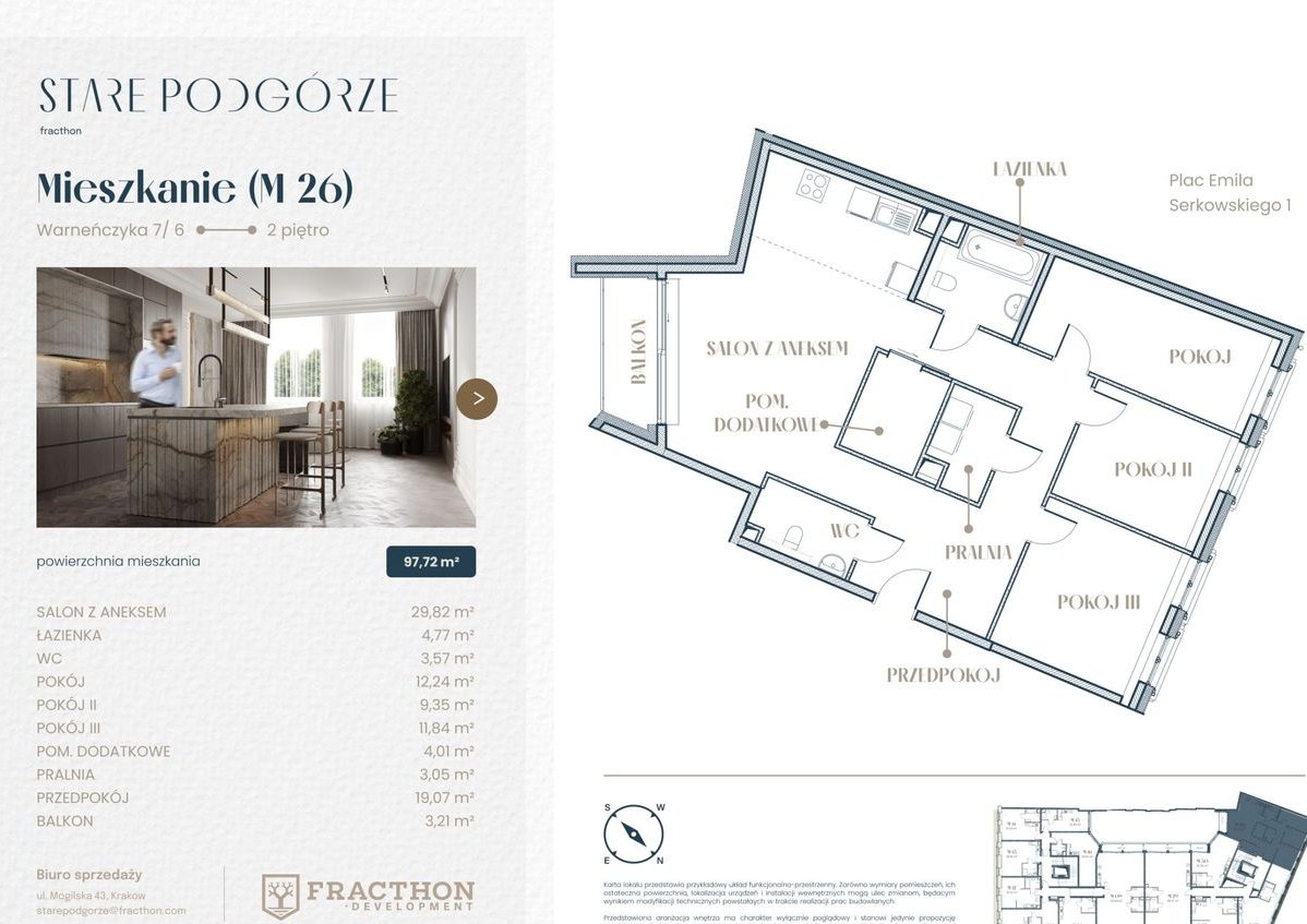 3-pokojowe mieszkanie numer 26 na 2. piętrze w Inwestycji Stare Podgórze Dewelopera Fracthon Development