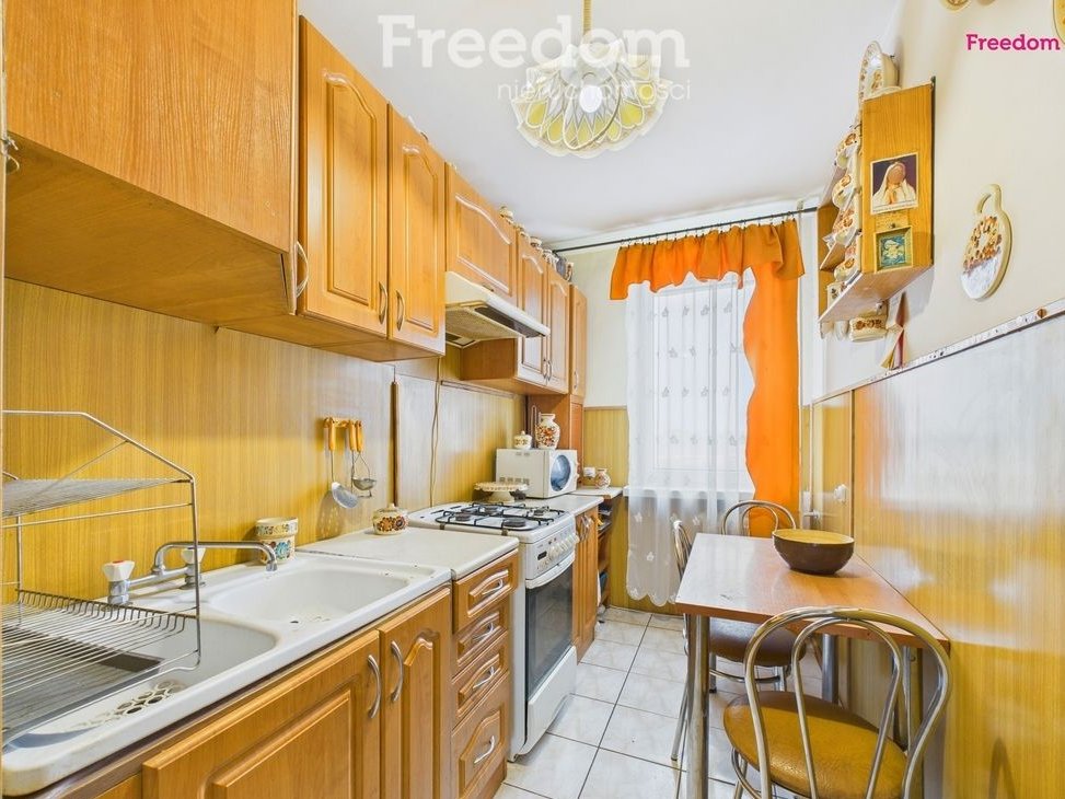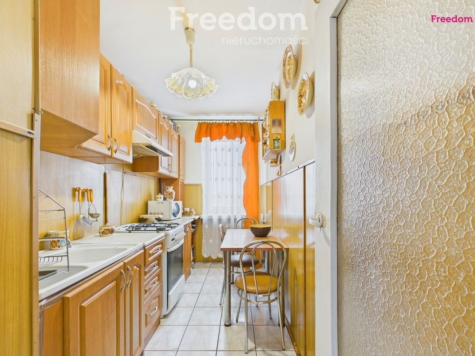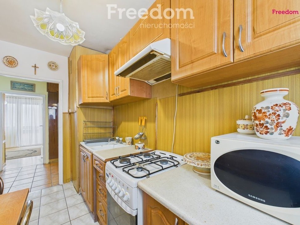 Mieszkanie składa się z 3 pokoi, kuchni, przedpokoju, łazienki oraz WC, jego powierzchnia wynosi 53,90m2. Nieruchomość posiada duży balkon i piwnicę, brak piecyka gazowego.