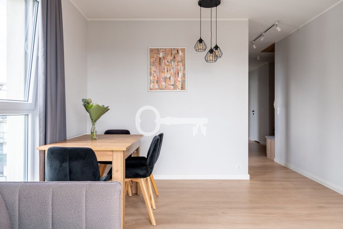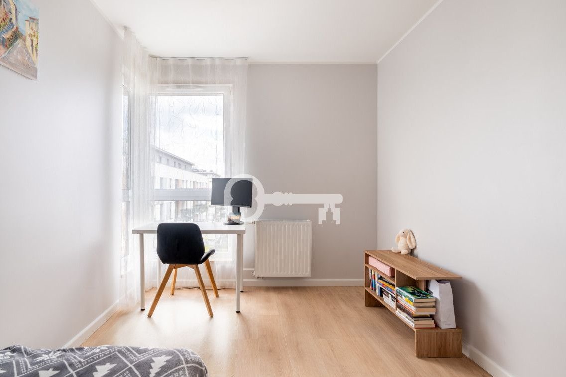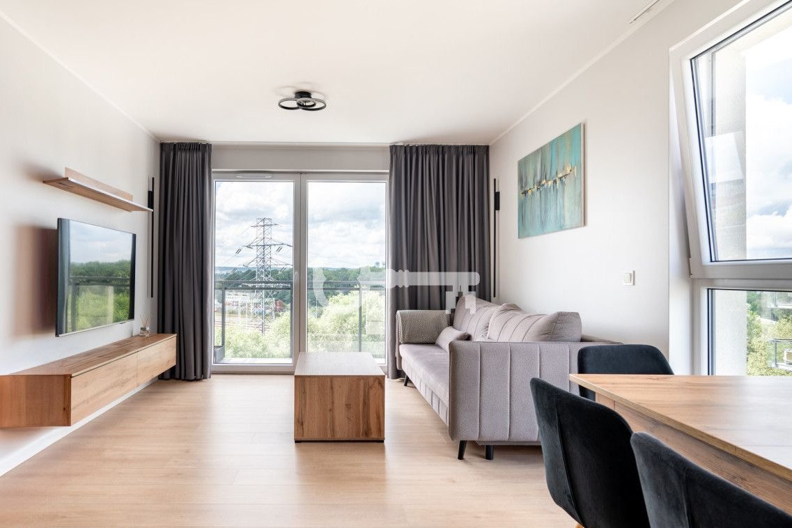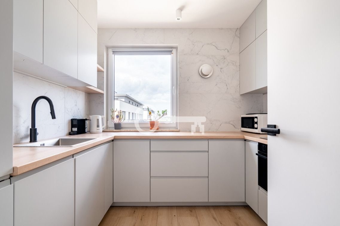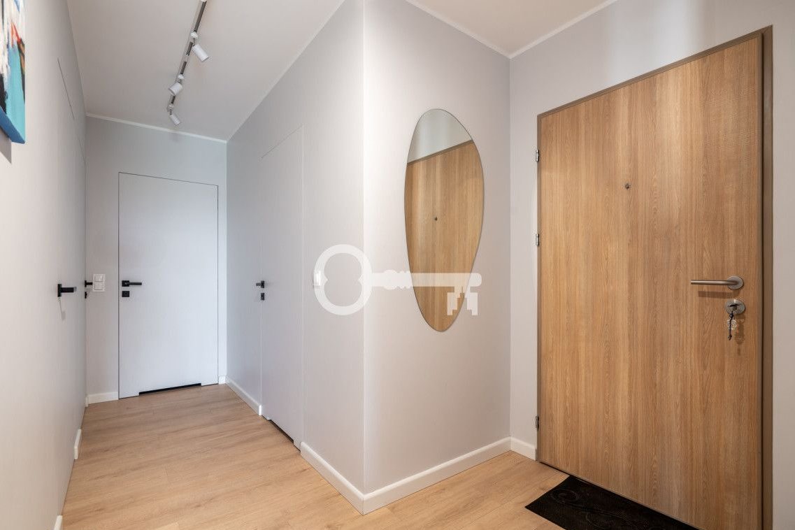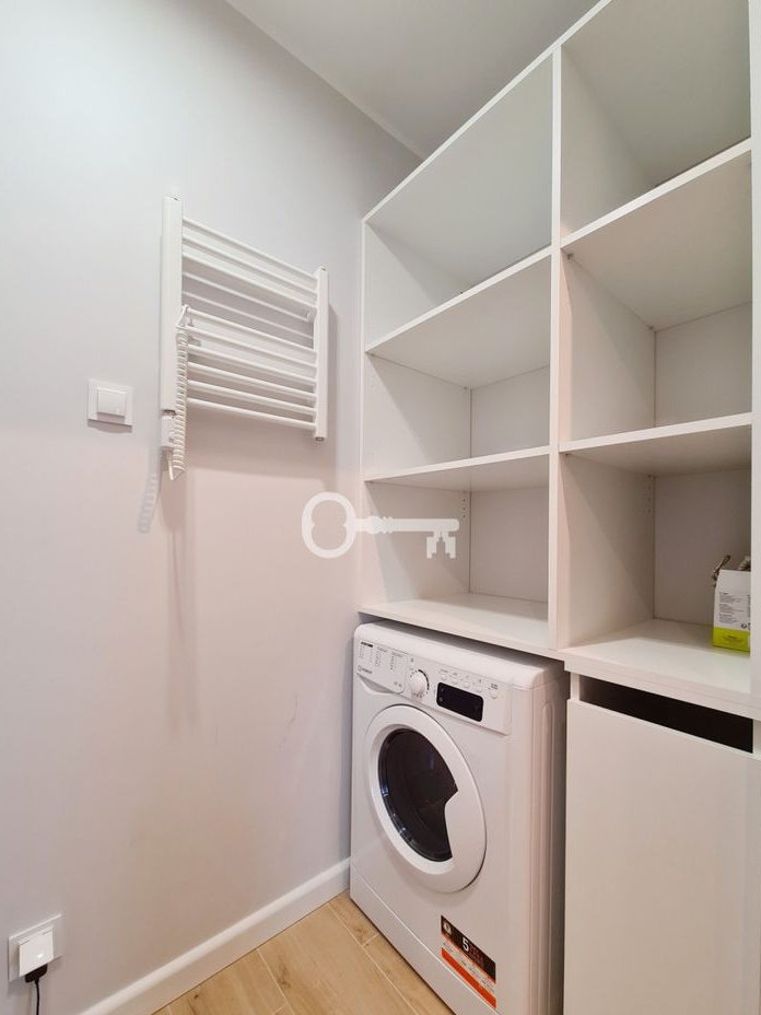The apartment is located in a new building from 2023, kept in excellent technical condition. Large, panoramic windows ensure plenty of natural light in every room and offer a beautiful view from the top floor. The layout provides everyday comfort - with a separate laundry room, a spacious bathroom, and well-insulated bedrooms. The building features an elevator, security monitoring, and modern common areas.