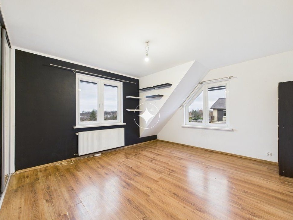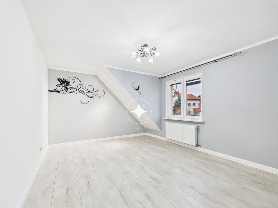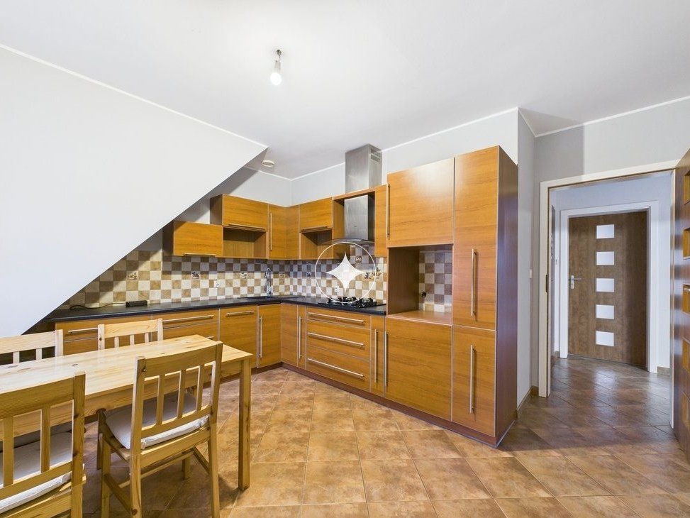 Bezczynszowe mieszkanie 3-pokojowe o powierzchni użytkowej 82,38 m², położone na piętrze domu wielorodzinnego podzielonego na dwa niezależne lokale (parter i piętro). Do lokalu przynależy garaż z pomieszczeniem gospodarczym o łącznej powierzchni 36,47 m² oraz własny ogród.