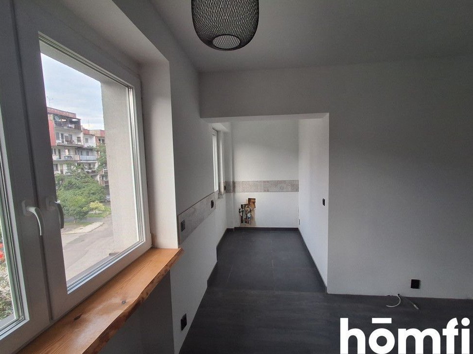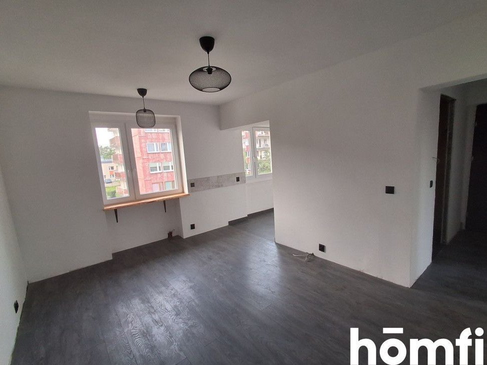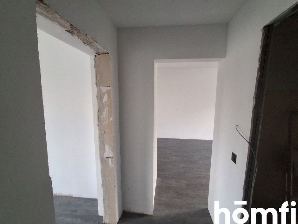 Finishing work still needs to be done: the bathroom, kitchen appliances, doors with frames, and radiators (pipes are already installed). The remaining renovation can be completed in two weeks with a down payment of approximately 30,000-40,000 PLN.