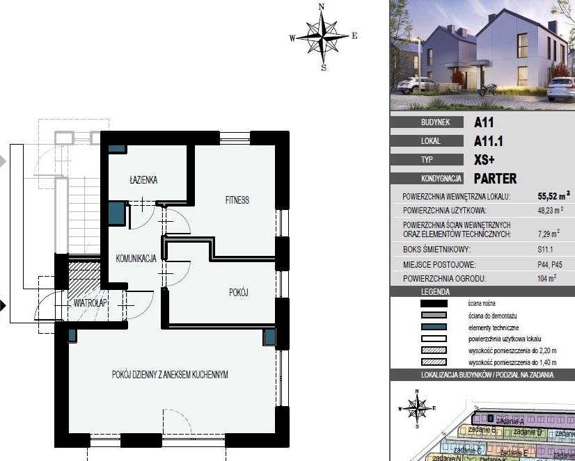 Odsprzedam 3 pokojowe mieszkanie z ogródkiem, na parterze o pow. wew. 55m2, pow. użytkowa 48.23m2, Mieszkanie w stanie deweloperskim odbiór czerwiec 2026 r. - cesja.