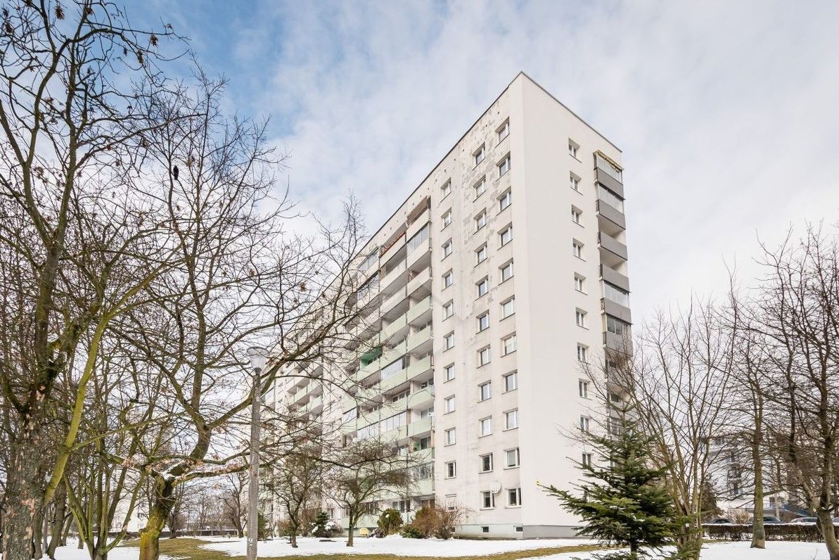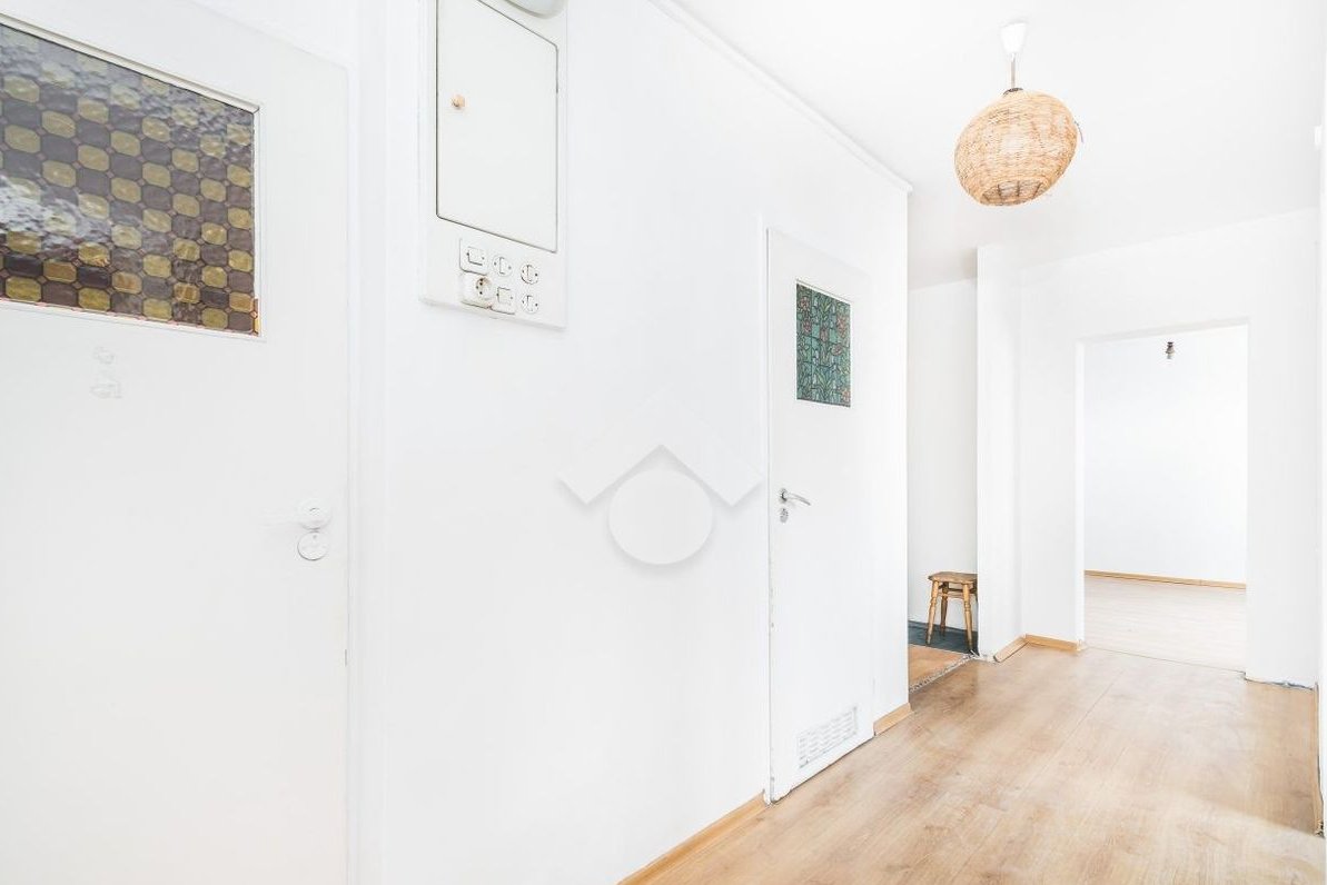 The 57 m² apartment is situated on the 3nd floor of a 10-storey building from the 1970s. It consists of three separate rooms, a bright separate kitchen, a bathroom with a toilet, and a hallway with space for built-in wardrobes.