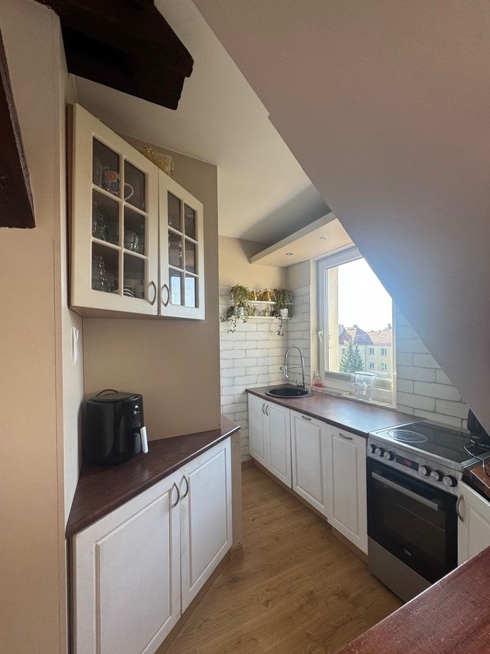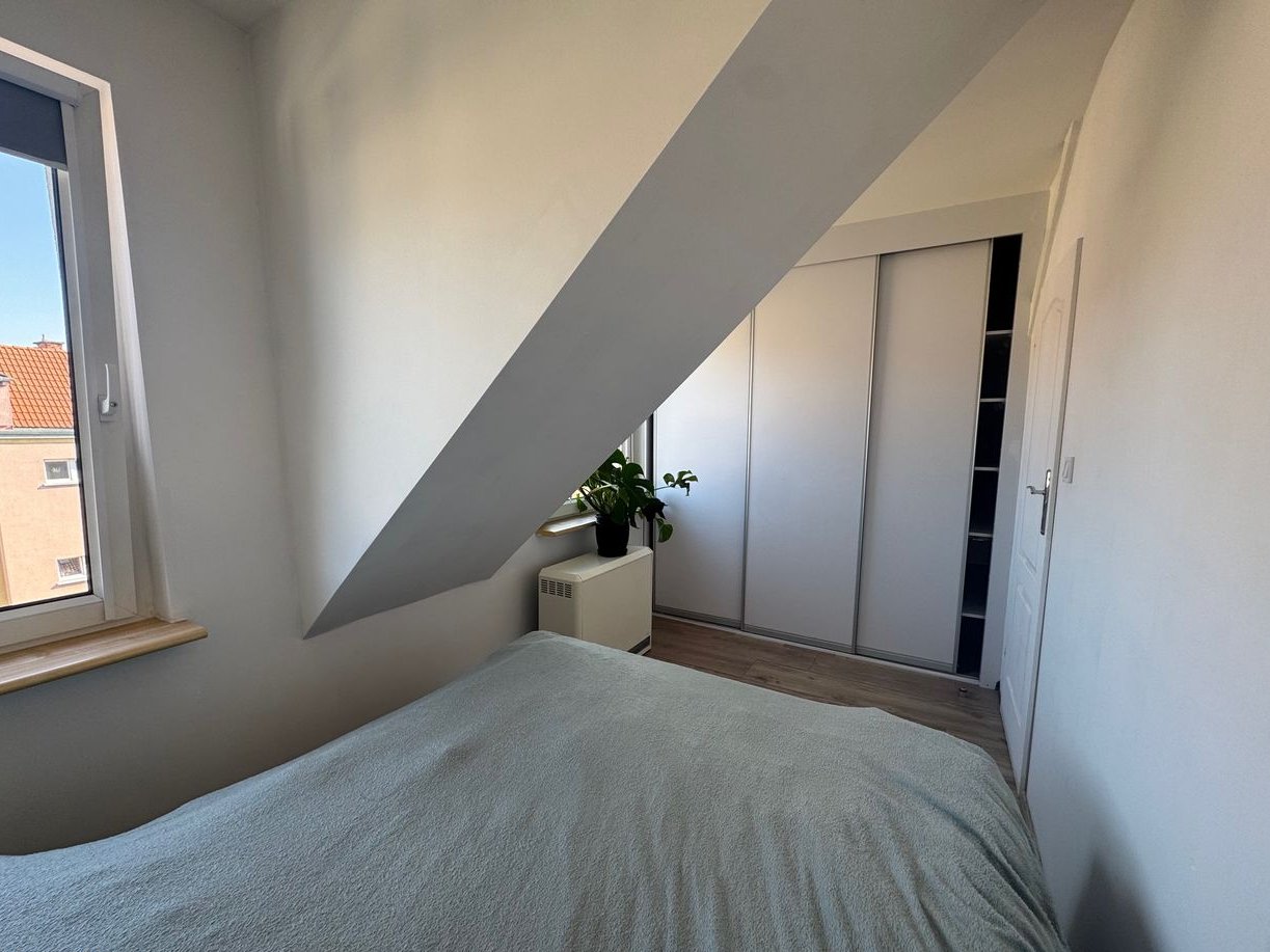 Lokal dwustronny , okna od strony południowej i północnej, lokal został zaadaptowany ze strychu. Na każdej kondygnacji znajdują się tylko po 2 mieszkania, dzięki temu jest bardzo spokojnie. Na piętrze , na którym znajduje się lokal jest również strych z możliwością korzystania . Do mieszkania przynależy duża, funkcjonalna piwnica , doskonałe miejsce na dodatkowe przechowywanie. Z okien mieszkania widać tereny zielone tj. ogródki rekreacyjne i jeden z nich o powierzchni ok. 100m2 jest dostępny dla nowego właściciela, a w nim huśtawka dla dzieci i trampolina.