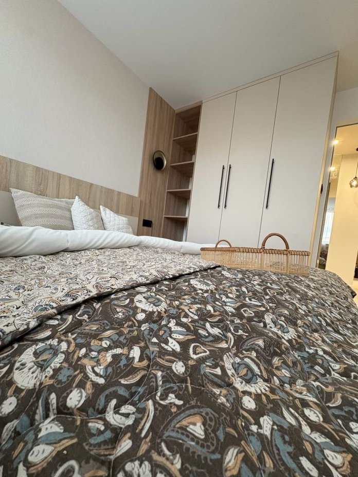 ustawną sypialnia w szafą na wymiar wykonana przez stolarza