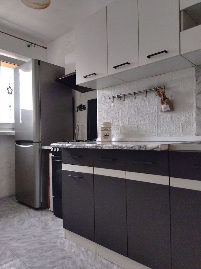 Kuchnia wyposażona w sprzęt AGD- lodówka, , piekarnik, kuchenka gazowa.