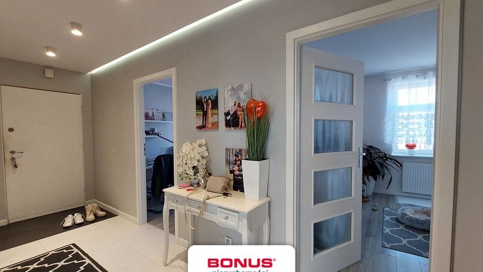 Mieszkanie znanduje się na I piętrze jednopiętrowego budynku z 2007 roku. Na powierzchnię 72 m2 składają się: