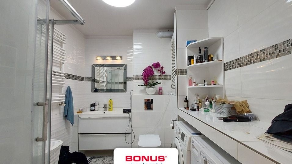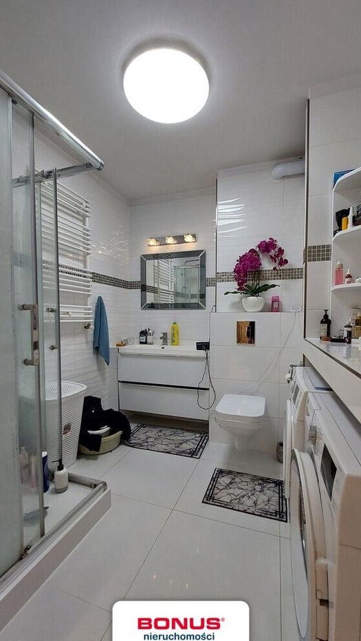 - łazienka z kabiną prysznicową, w nowoczesnej glazurze i terakocie,