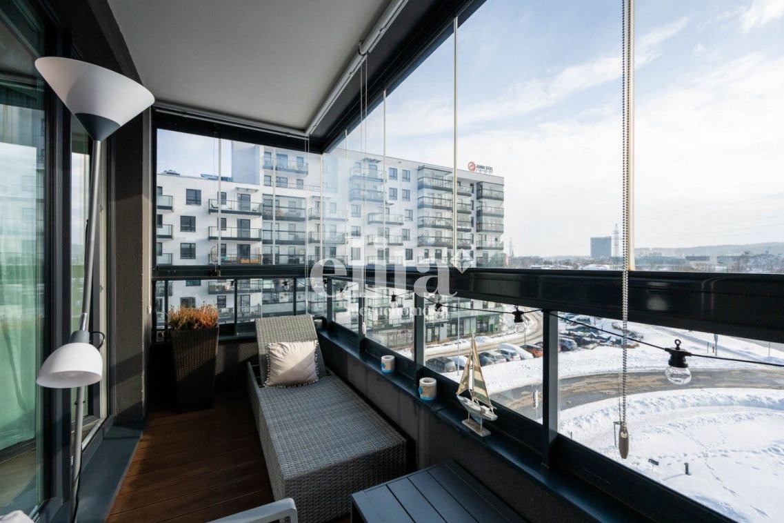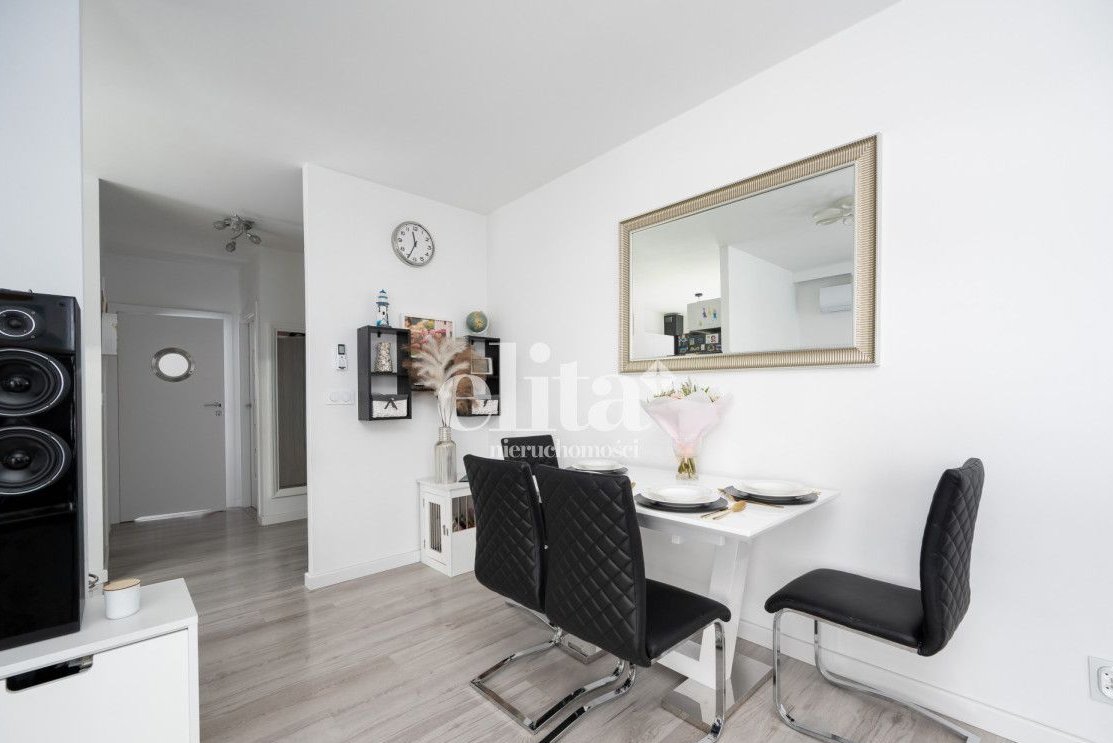 Apartament jest jasny, przestronny i niezwykle ustawny. Jasna kolorystyka, wysokiej klasy wykończenie oraz klimatyzacja gwarantują komfort przez cały rok. Loggia z widokiem na panoramę miasta stanowi idealne miejsce do relaksu.