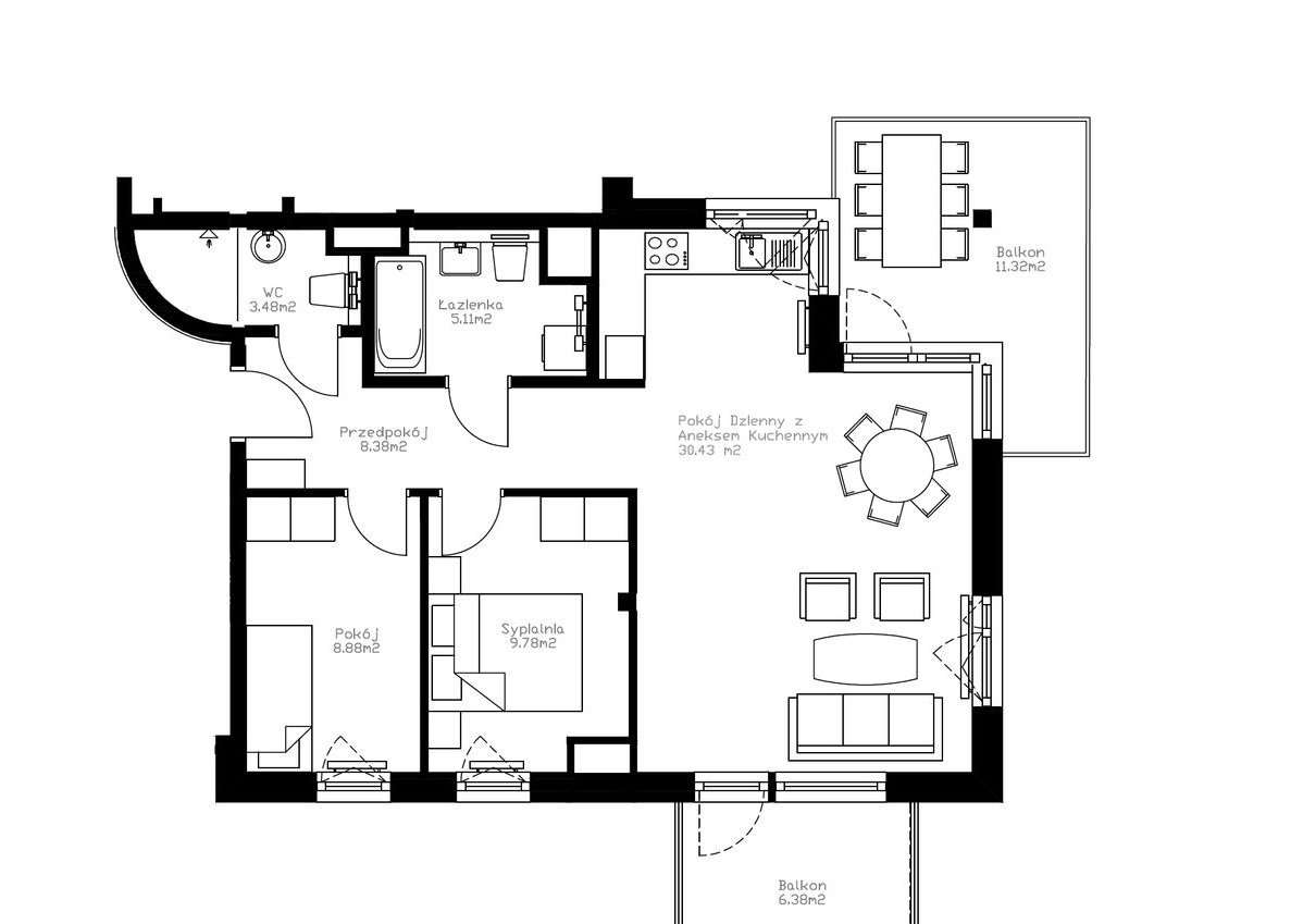 sypialnia – 9 m²(do dowolnej aranżacji)