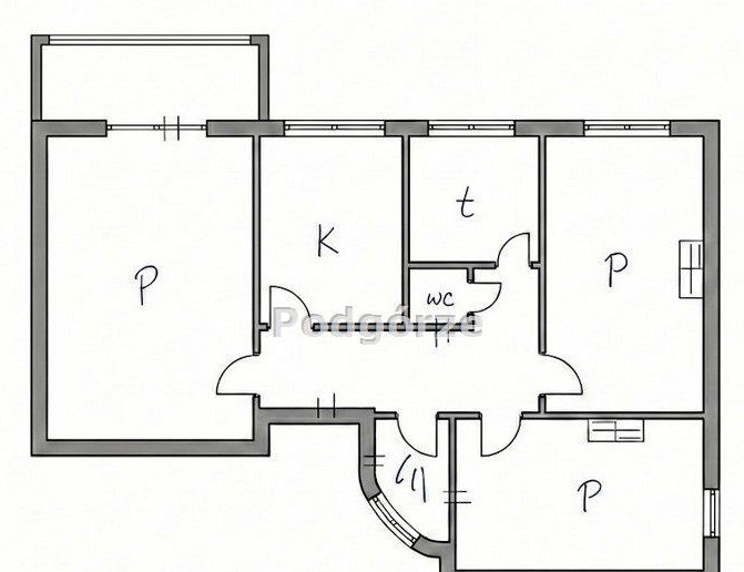 - możliwość łatwego podziału na 4 pokoje poprzez podział dużego pokoju