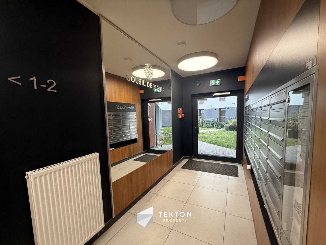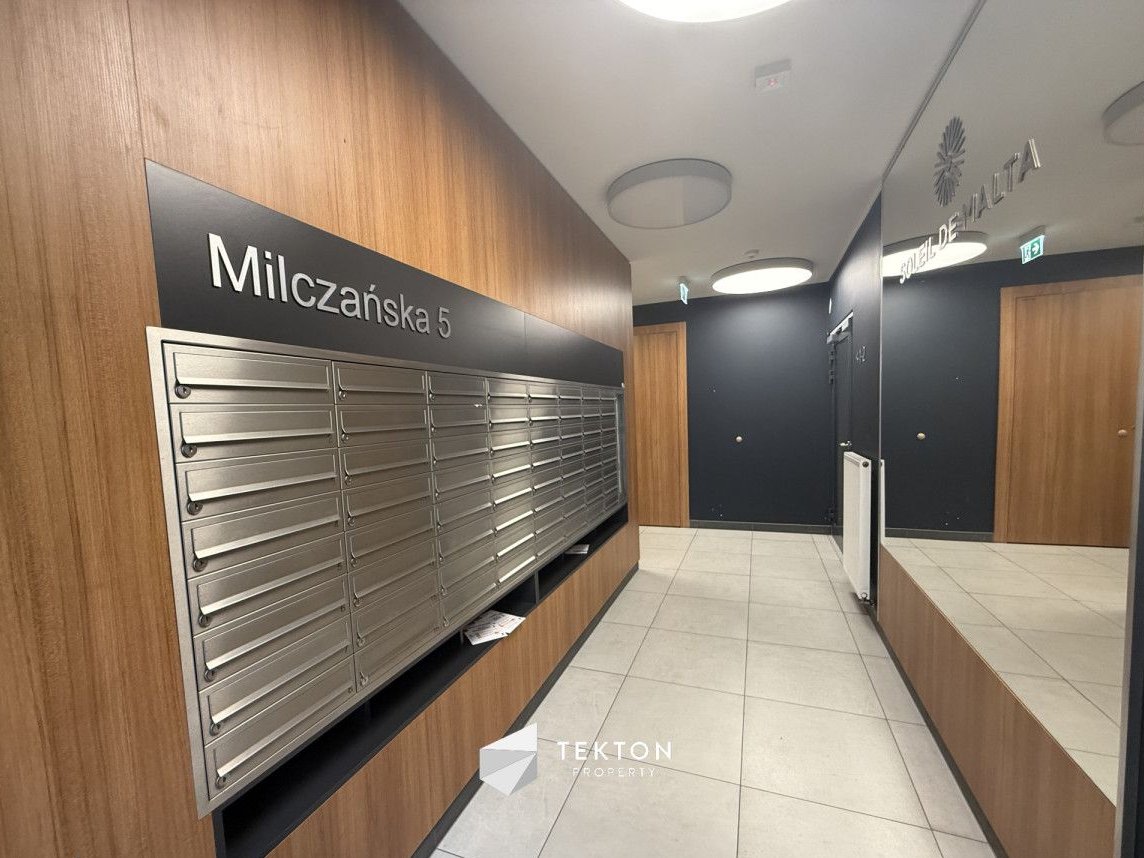 Nowoczesny apartamentowiec jest monitorowany i objęty ochroną, co podnosi komfort oraz bezpieczeństwo mieszkańców. Do dyspozycji mieszkańców pozostaje również plac zabaw oraz zadbane części wspólne. Czynsz administracyjny wynosi około 800 zł miesięcznie.