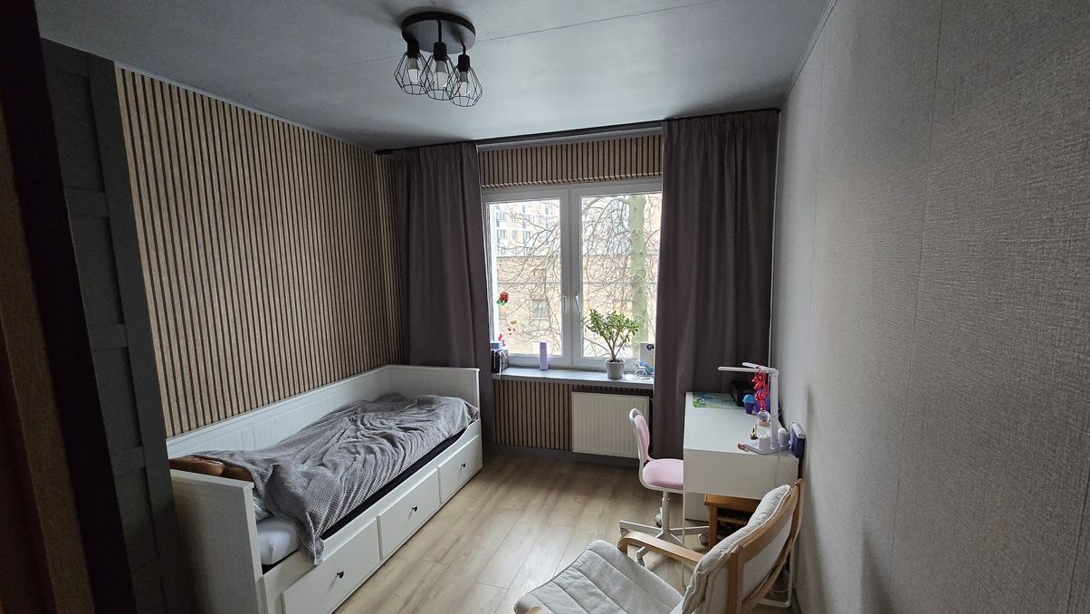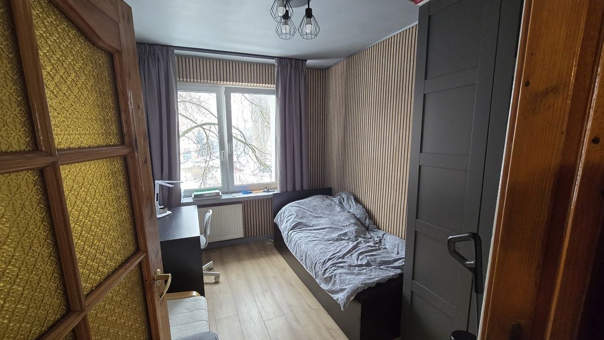 Mieszkanie do remontu lub odświeżenia. Z okien salonu i kuchni widok na zielone podwórko.
