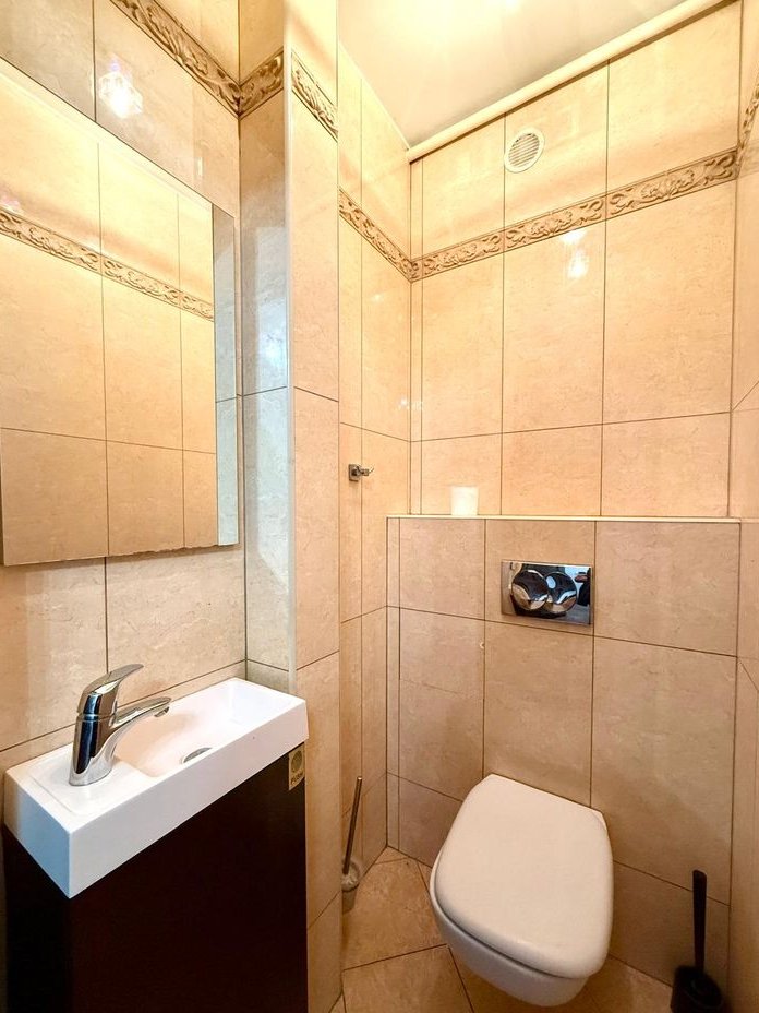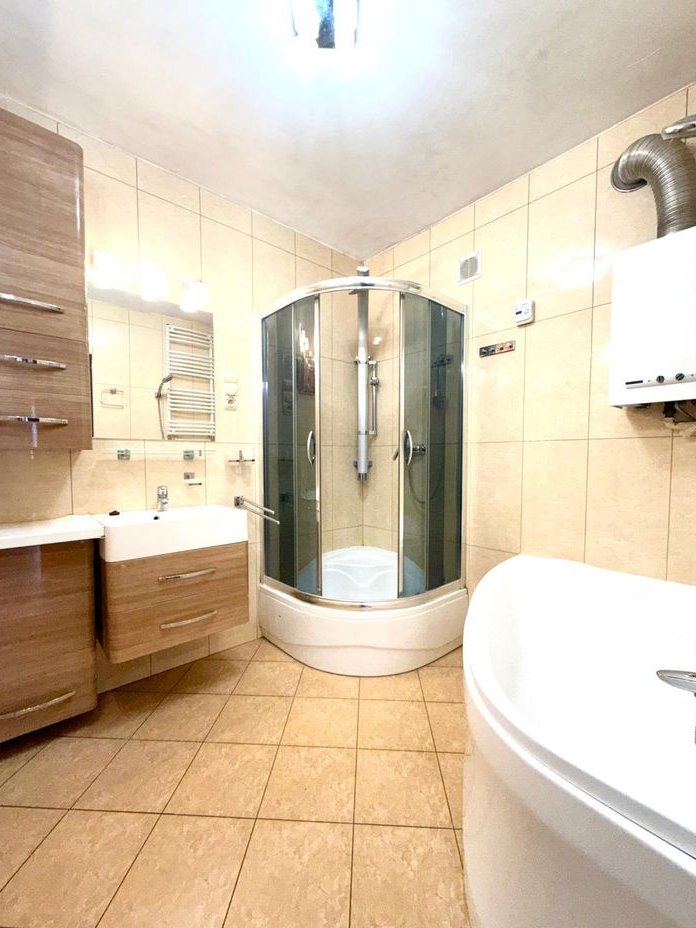 łazienka z wanną i prysznicem oraz osobna toaleta,