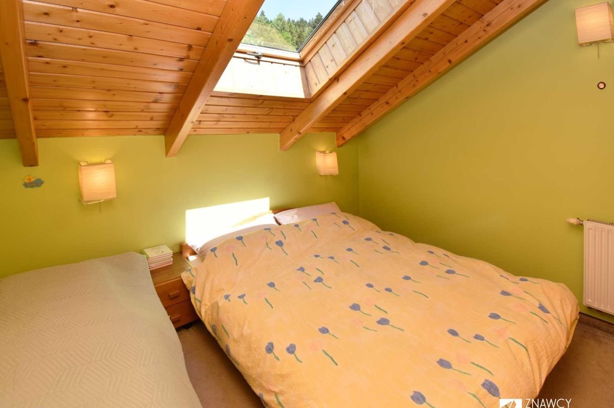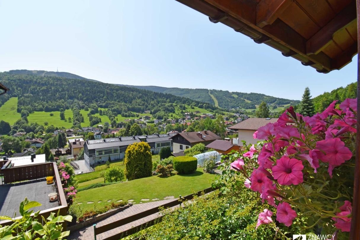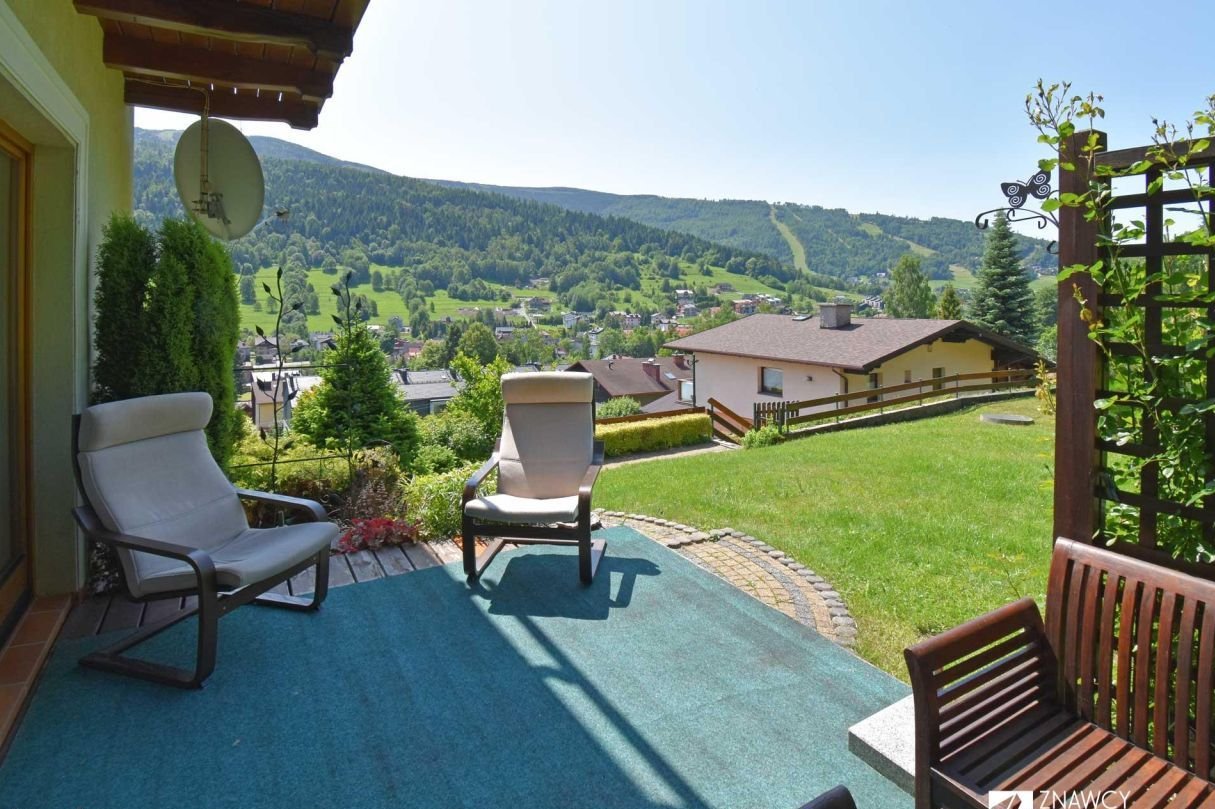 Dom w bardzo dobrym stanie technicznym, z efektownym widokiem na Skrzyczne i zadbaną działką. 4 pokoje (z balkonami i tarasem) + garaż.