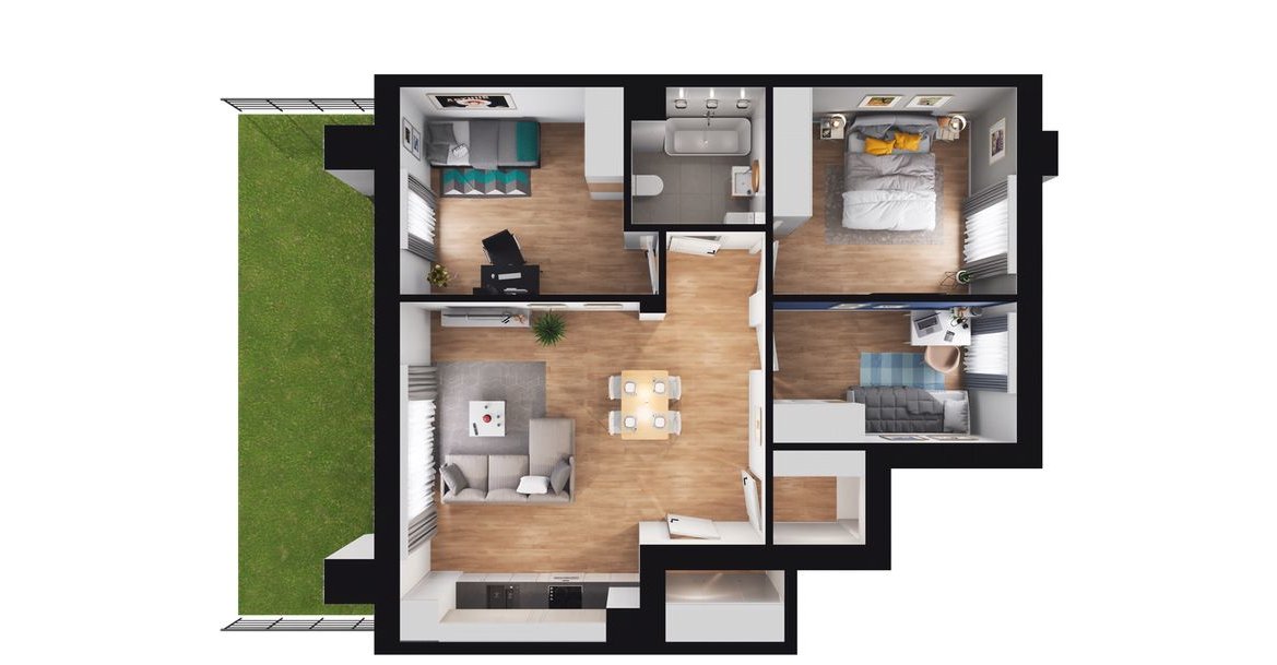 4-pokojowe mieszkanie numer AM12_0 na parterze w Inwestycji Aura Residence Dewelopera VP Invest Development